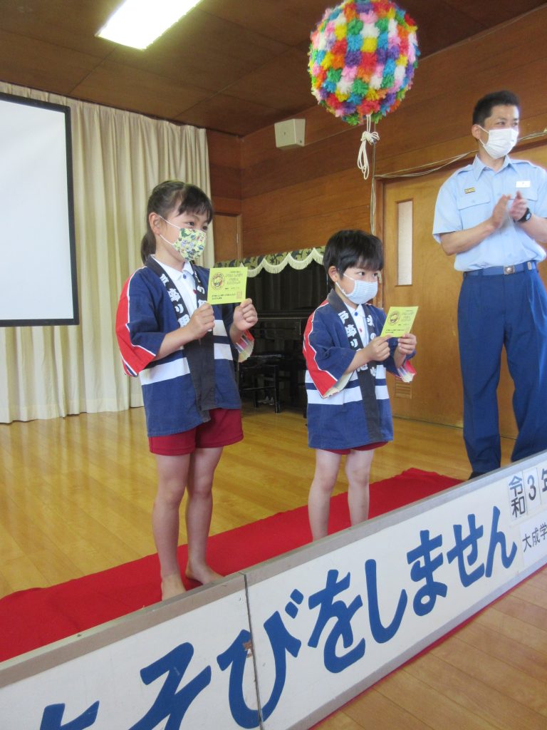 幼年消防クラブ発会式(5歳児) 2021 5/25 ニュース 今日は幼年消防クラブ発会式がありました。消防士の方から消防団になるための話を聞いたり、火遊びの恐ろしさやどんな約束を守ったら良いのかDVDを通して学びました。最後に”わたしたちはひあそびをしません”と声に出し、その大切さを改めて実感していたにじ組さんです。 消防団になった証!!ワッペンや認定書をいただきました。 ニュース URLをコピーしました! ほし組さんと一緒に…(5歳児) おばけのトンネル?!(2歳児) コメント コメントする コメントをキャンセルコメント ※ 名前 ※ メール ※ サイト 次回のコメントで使用するためブラウザーに自分の名前、メールアドレス、サイトを保存する。 上に表示された文字を入力してください。 Δ