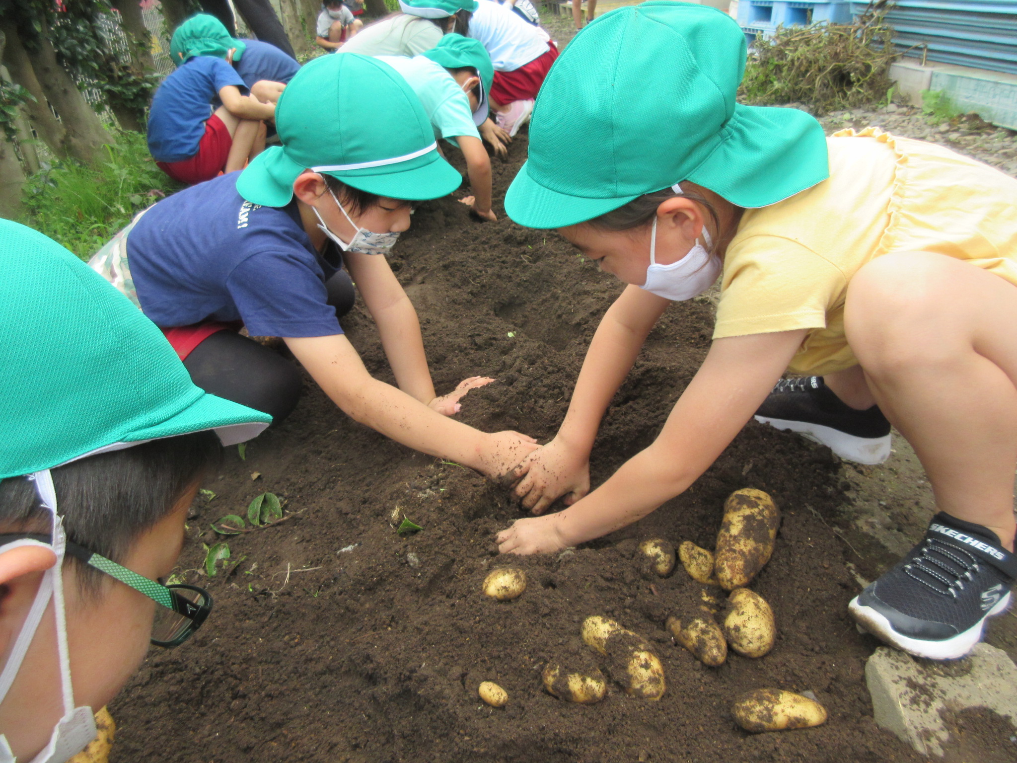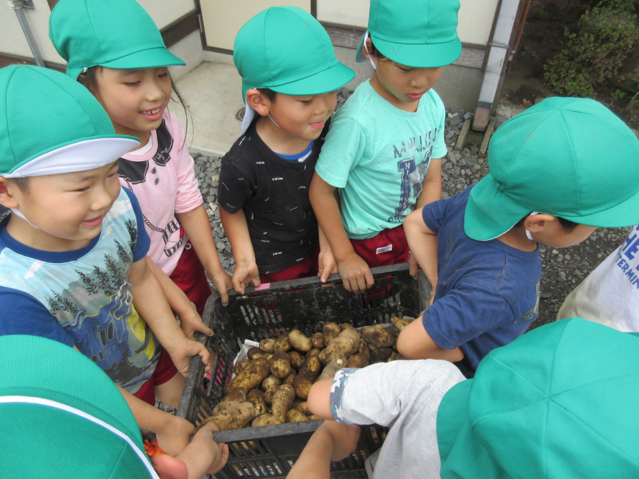 ジャガイモほり(5歳児) 2021 7/07 ニュース 天候が悪くなかなかできなかったジャガイモほり!「今日は雨降ってないからできるよ!」と畑に行き夢中になってジャガイモを掘っていました。「あっ!大きなジャガイモもある!!」「色んな形のジャガイモがあるね」と自分たちで手入れをして育てたジャガイモを見つけるたびに笑顔があふれる年長さんでした。 たくさん収穫することができ「どうやってジャガイモ食べる??」と今から考え、うれしさがこみあげてくる子どもたちです。 ニュース URLをコピーしました! 奉仕作業(つき・そら組保護者) 夏祭りへ向けて コメント コメントする コメントをキャンセルコメント ※ 名前 ※ メール ※ サイト 次回のコメントで使用するためブラウザーに自分の名前、メールアドレス、サイトを保存する。 上に表示された文字を入力してください。 Δ