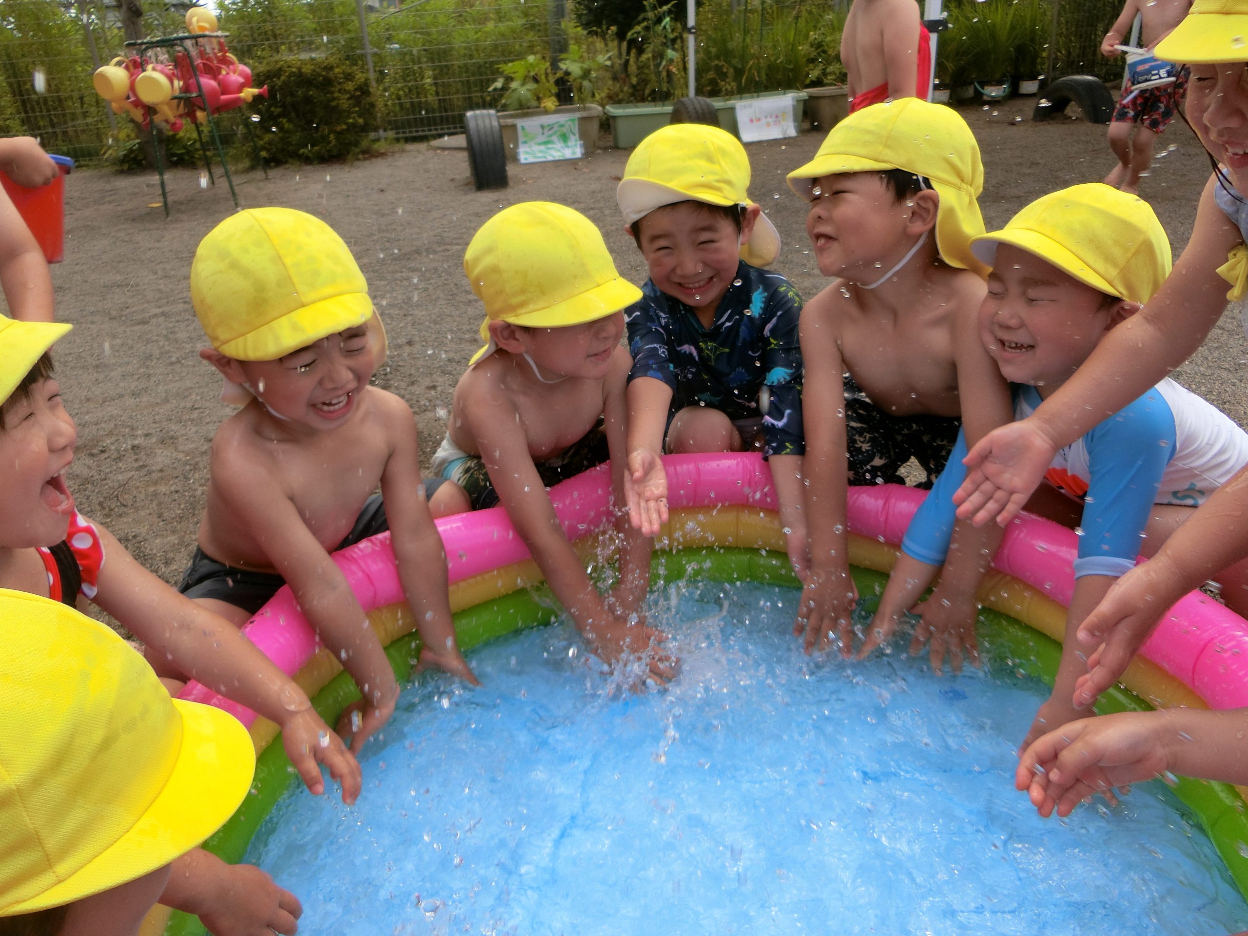 今年初めての水遊び(3歳児) 2021 7/16 ニュース 「水遊びやるっ!」と水着に着替えてやる気満々のつき組さん!プールに張った水をはじめは優しく触り、「冷たいね~」「気持ちいい~」と言っていた子どもたち。慣れてくると…手を大きく動かし水しぶきをあげ、ちょっぴりダイナミックに遊ぶ姿がみられました。 「水が顔にかかる~」と思いっきり楽しみました。 「ジュースどうぞ~」「一緒に持とう」とお店屋さんごっこに夢中です。 ニュース URLをコピーしました! 夏祭りへ向けて どろんこあそび(1歳) コメント コメントする コメントをキャンセルコメント ※ 名前 ※ メール ※ サイト 次回のコメントで使用するためブラウザーに自分の名前、メールアドレス、サイトを保存する。 Warning: Trying to access array offset on false in /home/c3936434/public_html/taisei.ac.jp/tgnn/wp-content/plugins/siteguard/really-simple-captcha/siteguard-really-simple-captcha.php on line 353 Warning: Trying to access array offset on false in /home/c3936434/public_html/taisei.ac.jp/tgnn/wp-content/plugins/siteguard/really-simple-captcha/siteguard-really-simple-captcha.php on line 353 Warning: Trying to access array offset on false in /home/c3936434/public_html/taisei.ac.jp/tgnn/wp-content/plugins/siteguard/really-simple-captcha/siteguard-really-simple-captcha.php on line 353 上に表示された文字を入力してください。 Δ