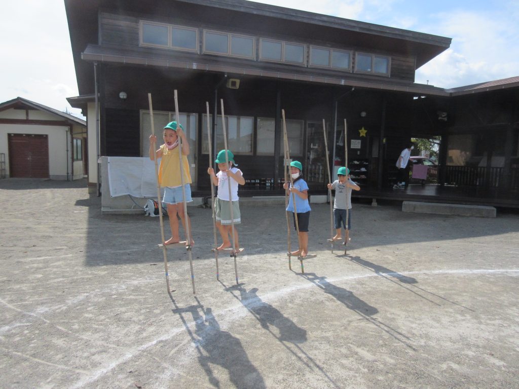 竹馬に挑戦!!(5歳児) 2021 8/26 ニュース 毎日、園庭に出ると「竹馬やりたい」と張り切る年長さん!!練習していく中で、一歩一歩と前に進めるようになってきました。「今日は20歩いく!」とチャレンジしたり、お友だちと一列に並んで「見てみて竹馬列車!」と進んでみたり・・・出来るようになったことを喜ぶにじ組さんです。 竹馬チャンピョンを目標に、園庭を何周出来るかな?と挑戦する子も出てきました。 ニュース URLをコピーしました! ボディーペインティング!!(4歳児) 夕涼み会(5歳児) コメント コメントする コメントをキャンセルコメント ※ 名前 ※ メール ※ サイト 次回のコメントで使用するためブラウザーに自分の名前、メールアドレス、サイトを保存する。 上に表示された文字を入力してください。 Δ