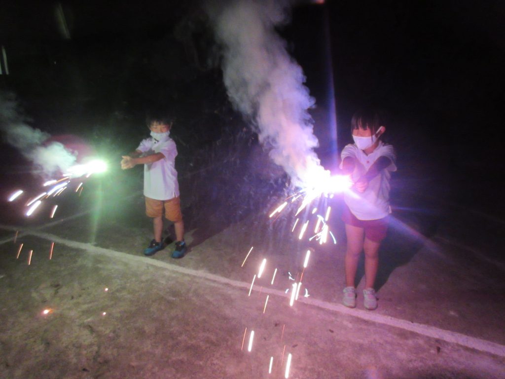 夜はみんなで花火!『奇麗だね〜』とニコニコがとまりませんでした。