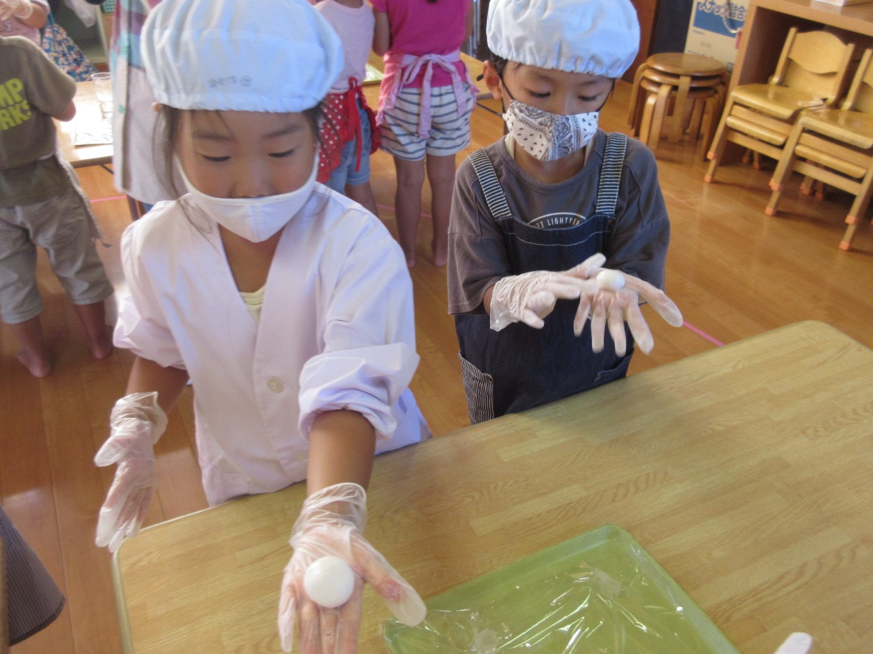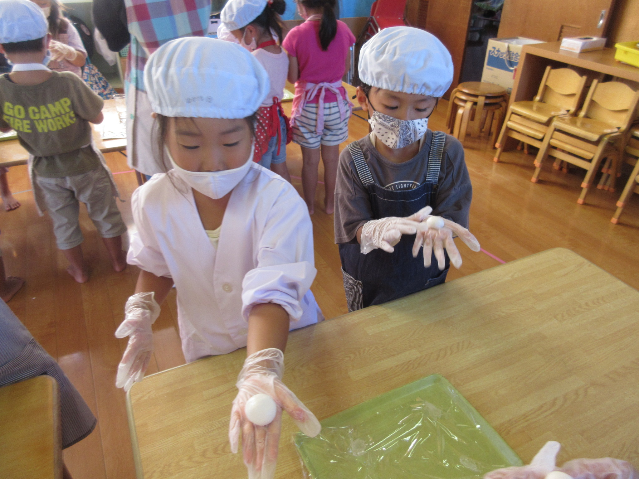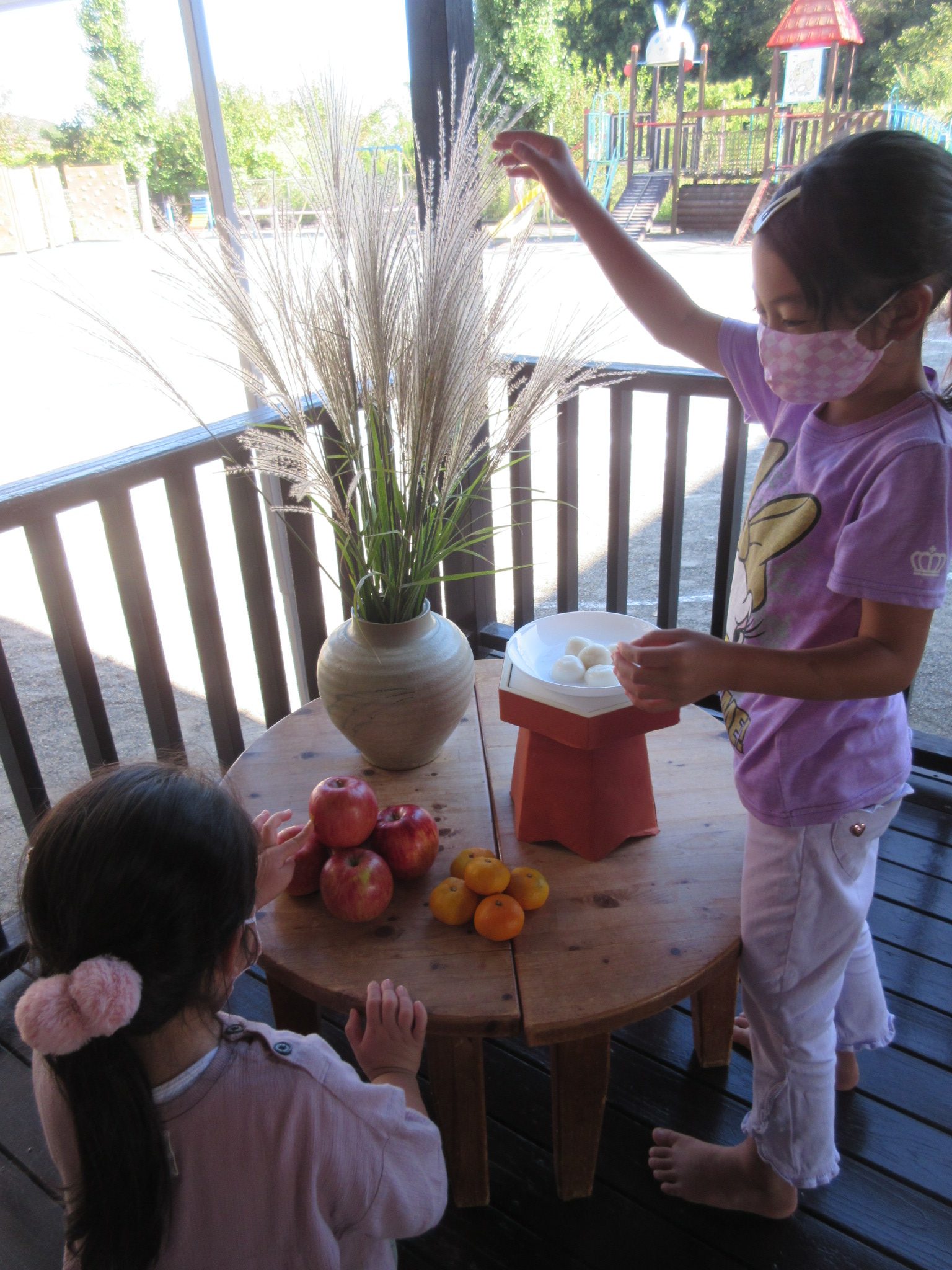 月見団子作り(5歳児) 2021 9/21 ニュース 今日は十五夜、みんなで月見団子作りをしました。お月様に感謝をしながら、「満月みたいにまんまるのお団子にしよう」とひとつひとつ丁寧に作る姿が見られました。 「少しずつ固まって、お団子みたいになってきた!!」 「お月様みたい??」「まんまるにできたよ!!」 「お月様見ててくれるかな〜?」とお供物を並べながら、飾りつけを進めていました。 ニュース URLをコピーしました! 稲刈り(5歳児) 3,4歳児、運動会再現遊び(パフォーマンス) コメント コメントする コメントをキャンセルコメント ※ 名前 ※ メール ※ サイト 次回のコメントで使用するためブラウザーに自分の名前、メールアドレス、サイトを保存する。 上に表示された文字を入力してください。 Δ