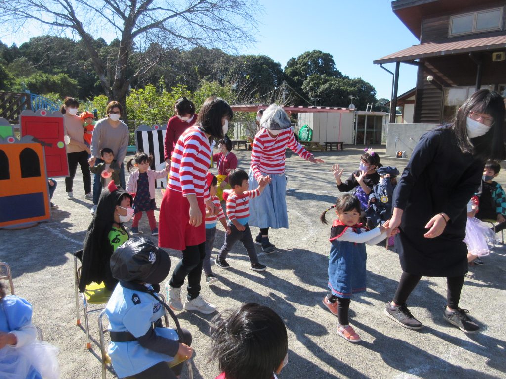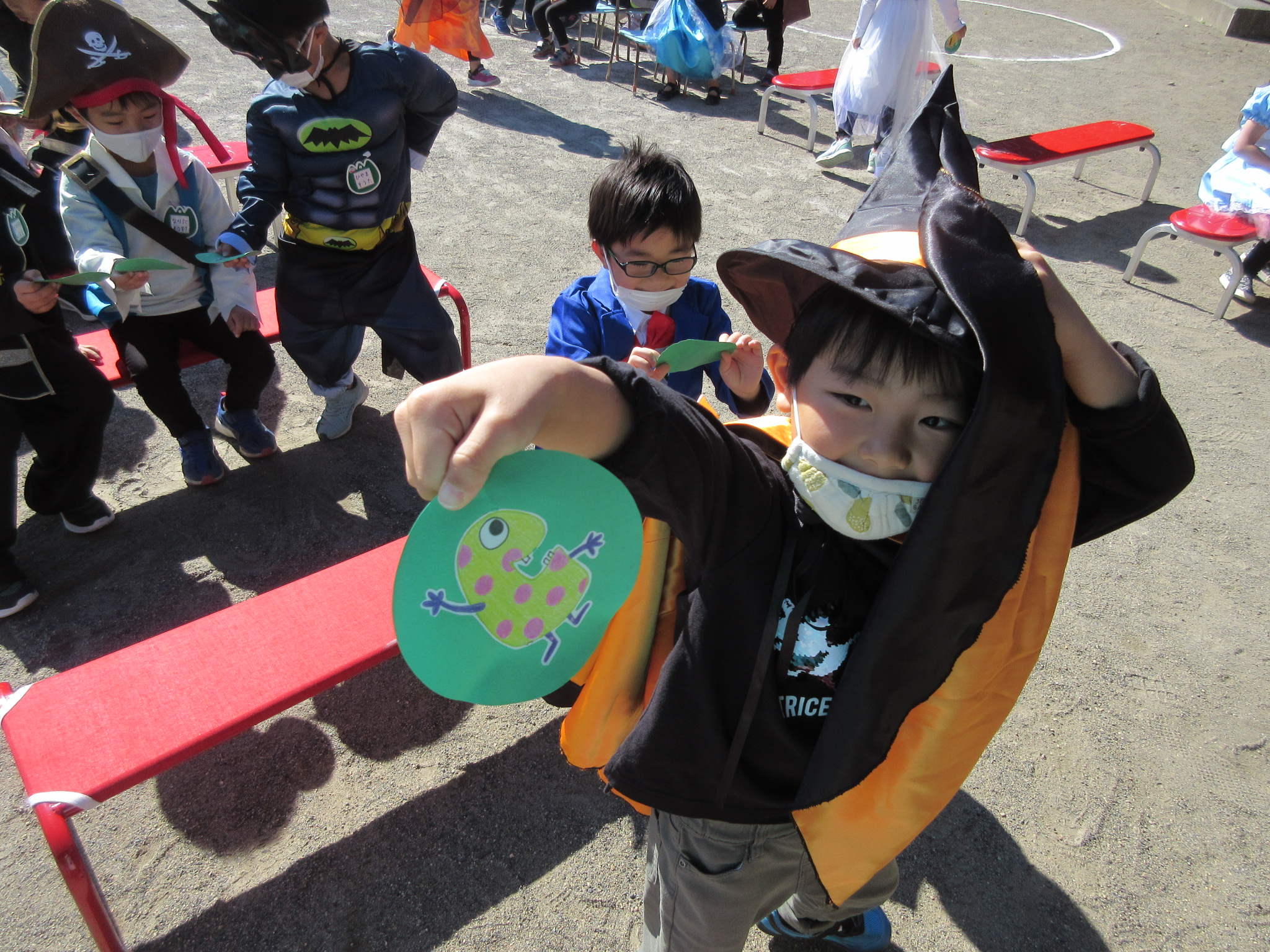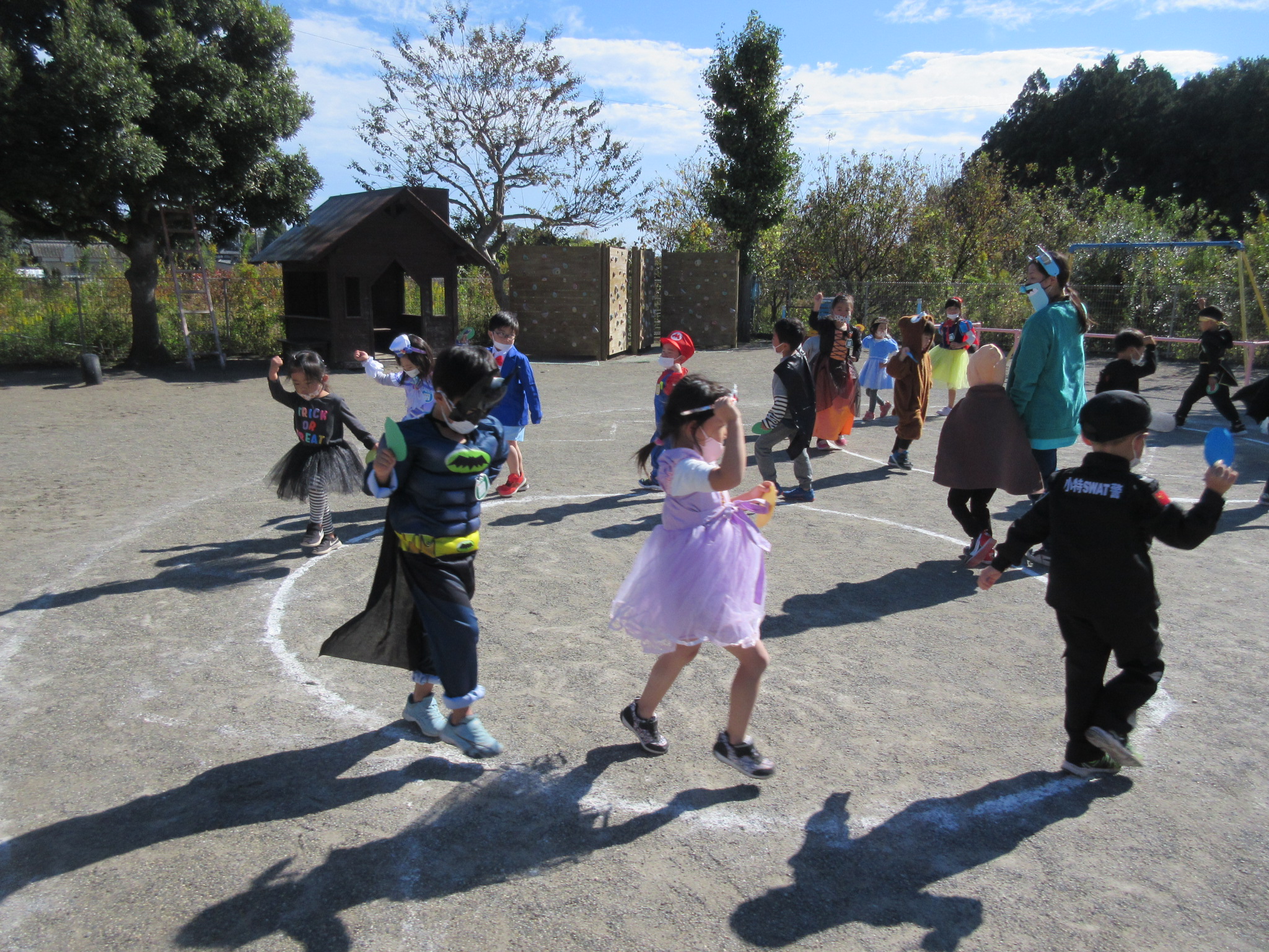 今日はハロウィンパーティー!!色々な仮装で登園してきた子どもたち。まずはハロウィンの由来についての話を聞いた後、ファッションショーを行いました!ランウェイをかっこよくかわいく歩いていましたよ!その後もモンスター探しのゲームをしたり、ダンスを踊ったり…。最後には「トリック・オア・トリート!!」とお菓子をもらい、笑顔があふれる子どもたちでした。