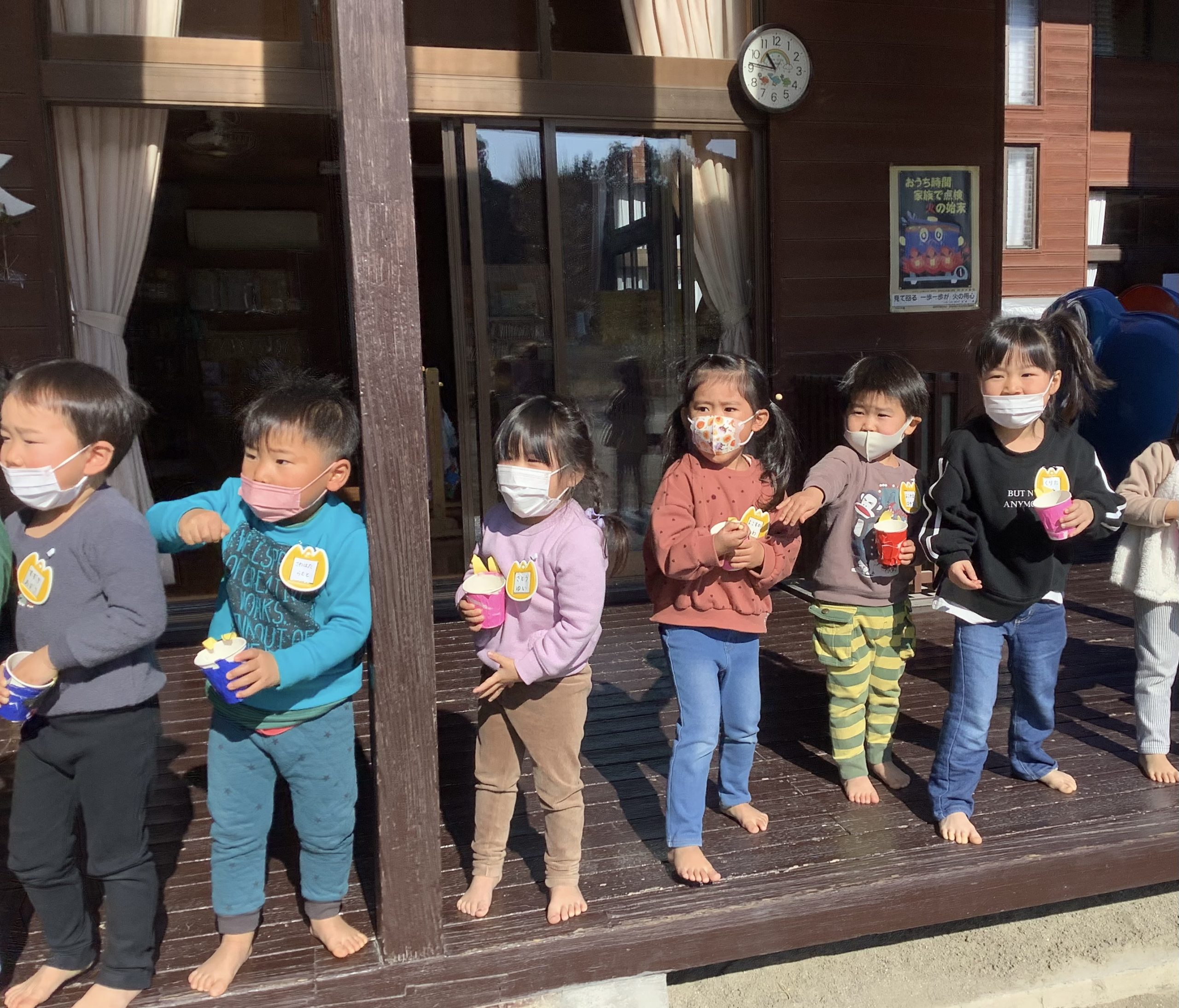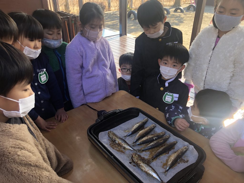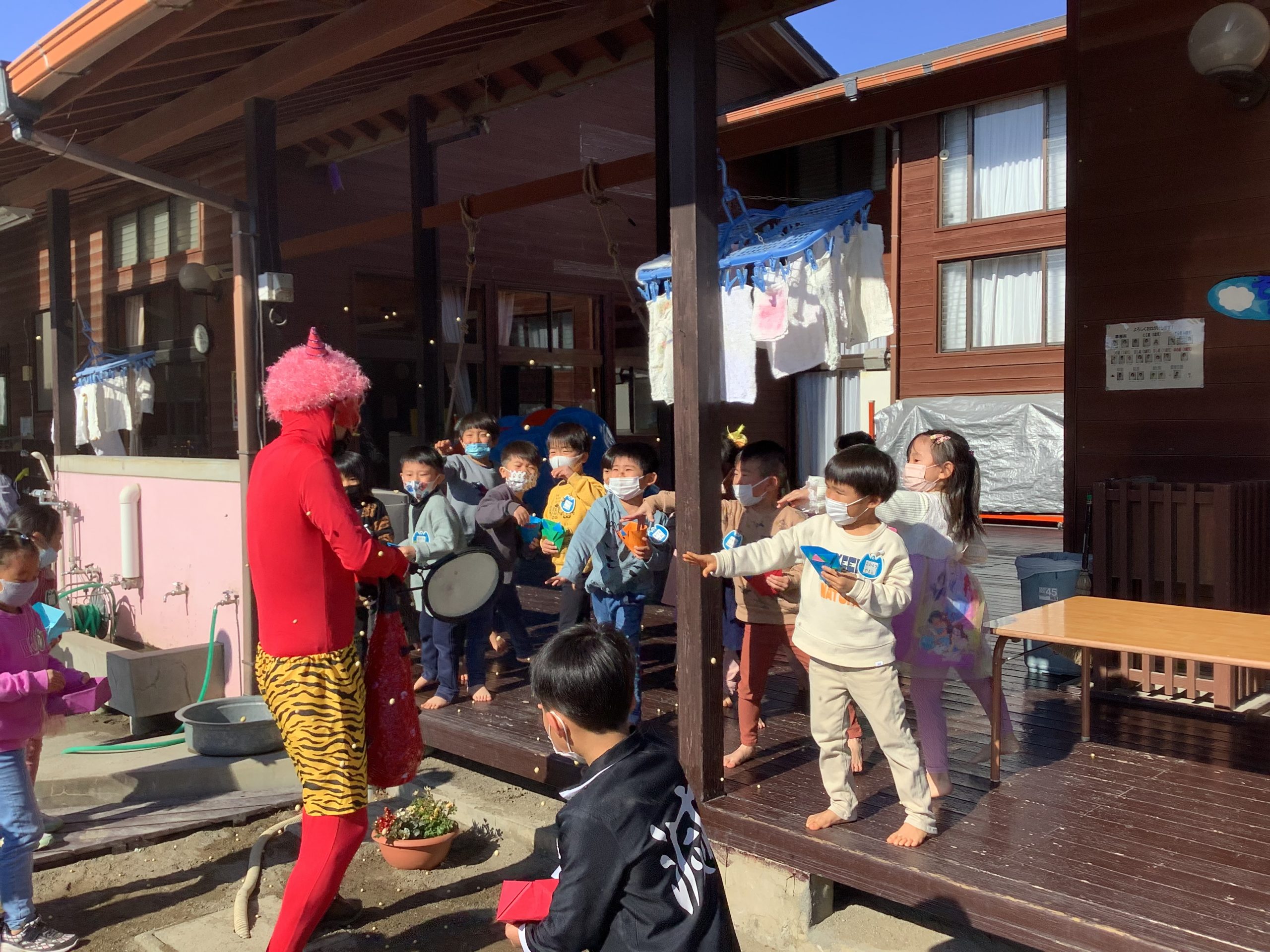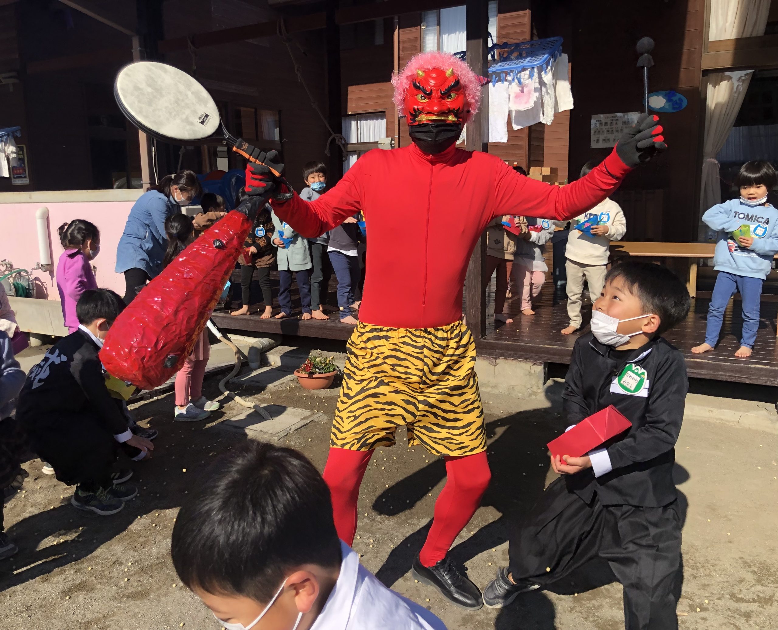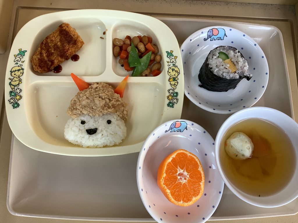豆まきパーティー 2022 2/03 ニュース 年長さんが、節分の準備をしました。イワシを焼くと「くさい!」「くさい!」と言いながら、やいかがしを作りました!節分のクイズの後は、鬼の登場です!皆んなで力を合わせて「鬼は外〜、福は内〜」と、元気な掛け声で豆をまいて無事に鬼を退治することが出来ました。 イワシって、こんな匂いがするんだね! 豆をまいて鬼を追い払うぞ~!! 鬼は〜外! そら組も力強く鬼は外〜! つき組も頑張って豆をなげるぞ〜 給食の先生が、鬼の顔にこだわって給食を作ってくれました!子どもたちは給食を見て、とても喜びながら食べていました‼︎ ニュース URLをコピーしました! なわとび、とべたよ!(5歳児) お店屋さん作りパート2(5歳児) コメント コメントする コメントをキャンセルコメント ※ 名前 ※ メール ※ サイト 次回のコメントで使用するためブラウザーに自分の名前、メールアドレス、サイトを保存する。 上に表示された文字を入力してください。 Δ