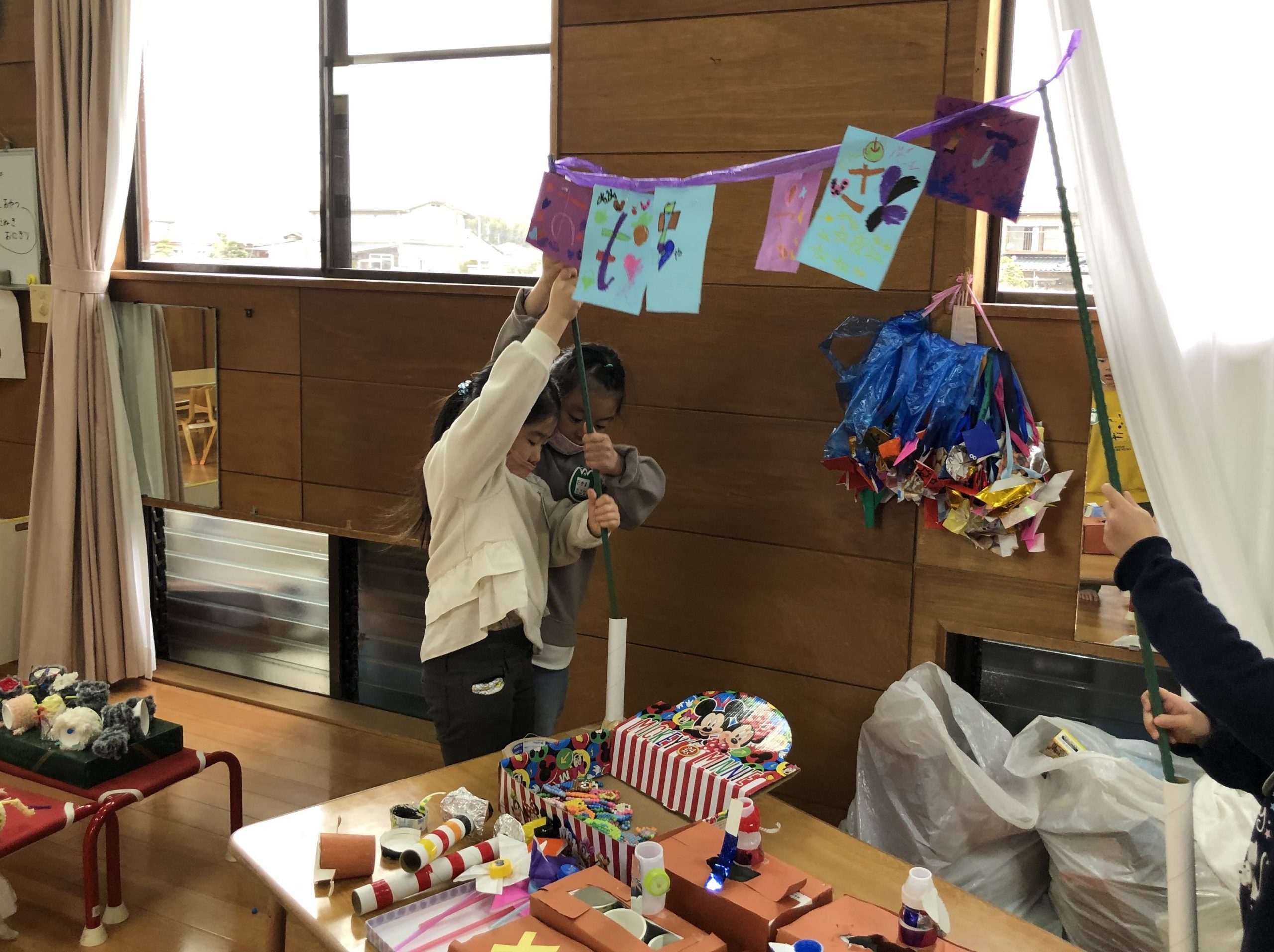 お店屋さん作りパート2(5歳児) 2022 2/09 ニュース 来週、いよいよお店屋さんがオープン!!それぞれ、開店準備を進めています。「お店の看板を作らなくちゃ!」「もう一つ新しいゲームを作ろう」とグループごとに何が自分たちのお店に必要か、考えながら取り組んでいます。 ニュース URLをコピーしました! 豆まきパーティー お店屋さん作り(5歳児) コメント コメントする コメントをキャンセルコメント ※ 名前 ※ メール ※ サイト 次回のコメントで使用するためブラウザーに自分の名前、メールアドレス、サイトを保存する。 上に表示された文字を入力してください。 Δ