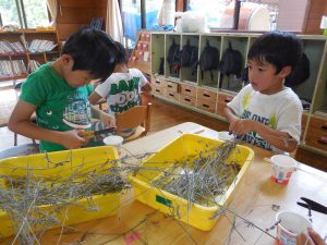 ラベンダーでポプリ作り(5歳児) 2016 7/04 ニュース 先日園舎裏で摘んだラベンダーを乾燥させて、ポプリを作りました。「いい匂い」と子供たち。「ママにプレゼントしようかな。」「寝るときに枕の近くに置いておこうかな。」と思いおもいに作っていました。 ニュース URLをコピーしました! サツマイモの苗植え・幼稚園との交流(5歳児) 笹の葉取り(4、5歳児) コメント コメントする コメントをキャンセルコメント ※ 名前 ※ メール ※ サイト 次回のコメントで使用するためブラウザーに自分の名前、メールアドレス、サイトを保存する。 上に表示された文字を入力してください。 Δ