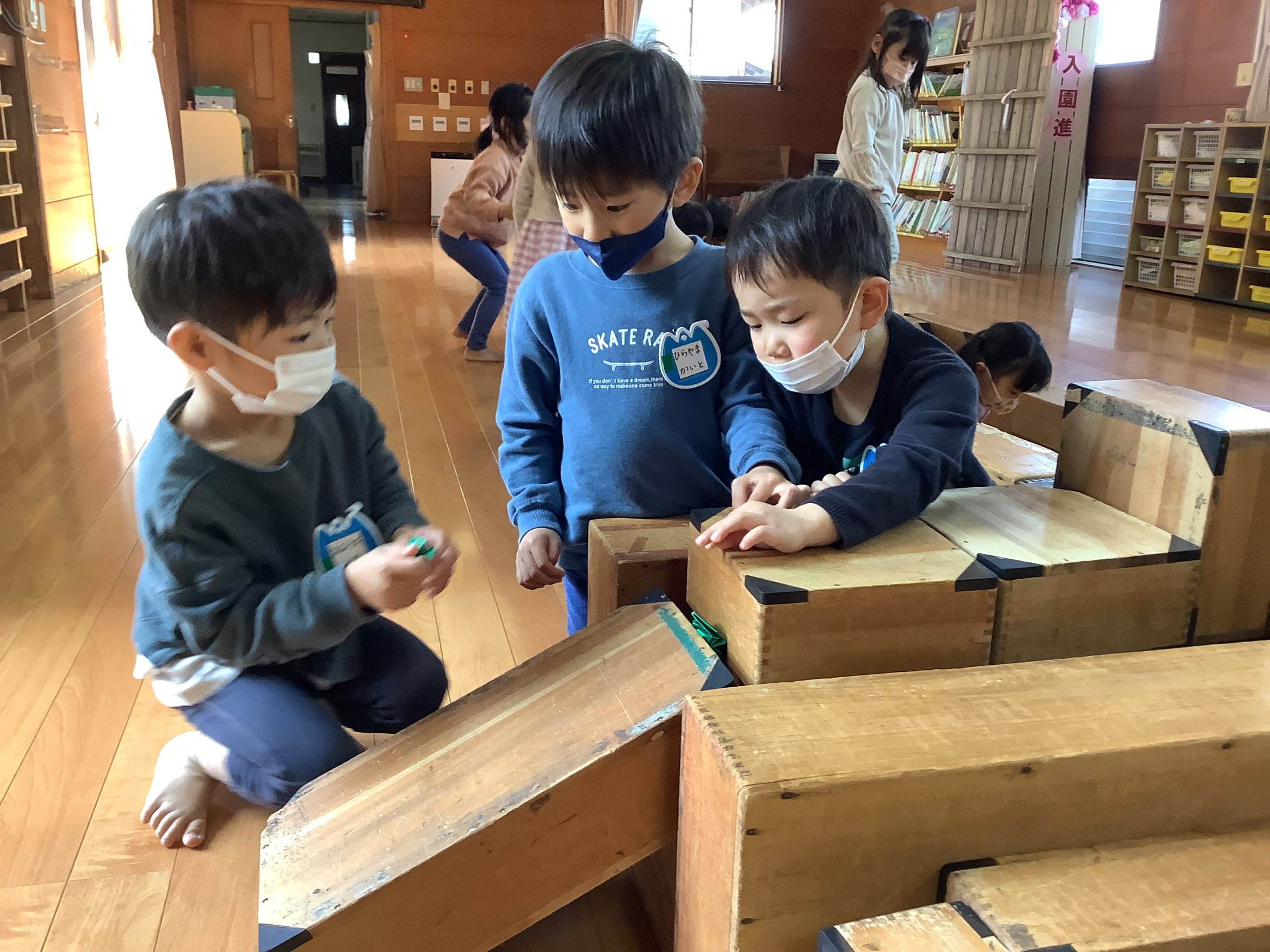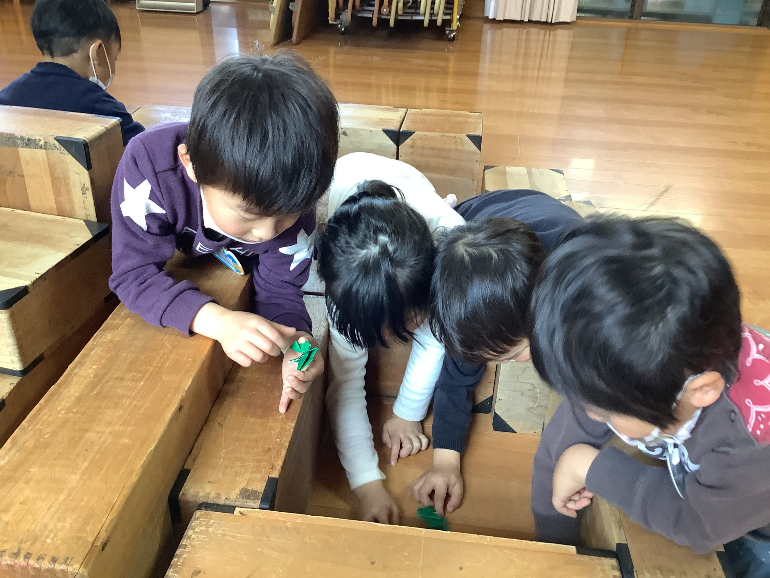 春の遊び(4歳児) 2022 4/14 ニュース 小さく畳んで折った折り紙を指で押さえたらピョーンと跳んだことがきっかけで始まった「跳ねるカエル作り」。とても難しかったので何日もかけて折りました。完成したカエルさんを跳ばすために、積み木で道路や滑り台、階段に池がどんどん出来上がりました。 カエルに変身してカエルジャンプに挑戦したり・・・ そして今日ついに、お散歩にて本物のカエルさんに遭遇!!しました!!みんなで集めたタンポポのベットに寝かせてあげました。 ニュース URLをコピーしました! ともだちみ〜つけた!(ほしぐみ1歳児) 春の遊び 2 (4歳児) コメント コメントする コメントをキャンセルコメント ※ 名前 ※ メール ※ サイト 次回のコメントで使用するためブラウザーに自分の名前、メールアドレス、サイトを保存する。 上に表示された文字を入力してください。 Δ