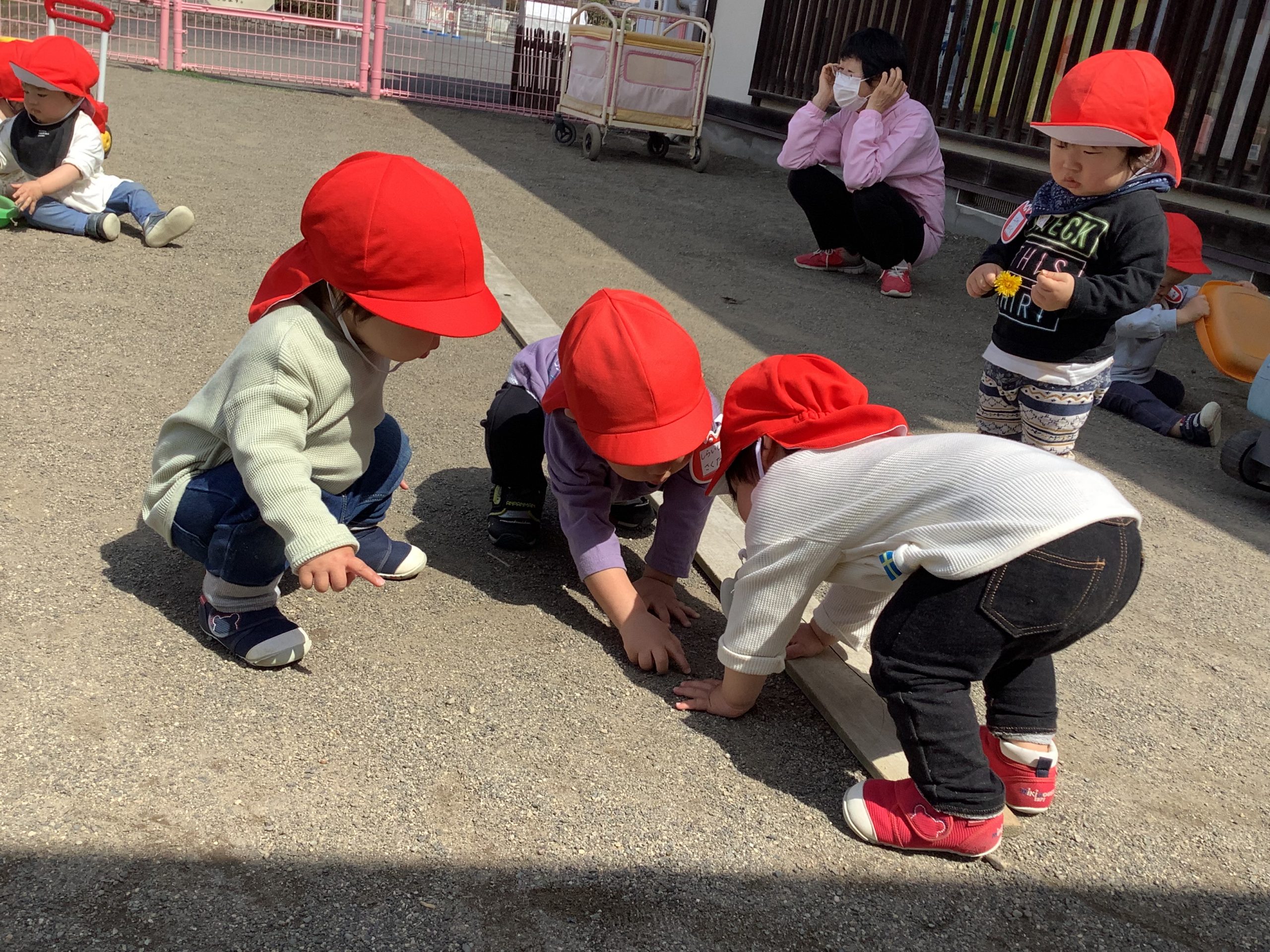 ともだちみ〜つけた!(ほしぐみ1歳児) 2022 4/13 ニュース 新しい友だちも保育園生活に慣れ始め、1歳児クラスの友だちもそれぞれ好きな遊びを見つけて遊ぶ姿がみられるようになりました!どんなことをしているのかのぞきこんだり、同じことをやってみようとしたり…微笑み合ったりしながら保育者と一緒に安心した環境の中で少しずつ自分を出しながら過ごしています。 「おにもついっぱいのせられたね!」「もっともっとのせよう!」 プレイカーを押しながら、たくさん歩いています!! 「あっ!ムシがいた。まてまて〜」 ニュース URLをコピーしました! 園庭にお散歩♪(0歳) 春の遊び(4歳児) コメント コメントする コメントをキャンセルコメント ※ 名前 ※ メール ※ サイト 次回のコメントで使用するためブラウザーに自分の名前、メールアドレス、サイトを保存する。 上に表示された文字を入力してください。 Δ