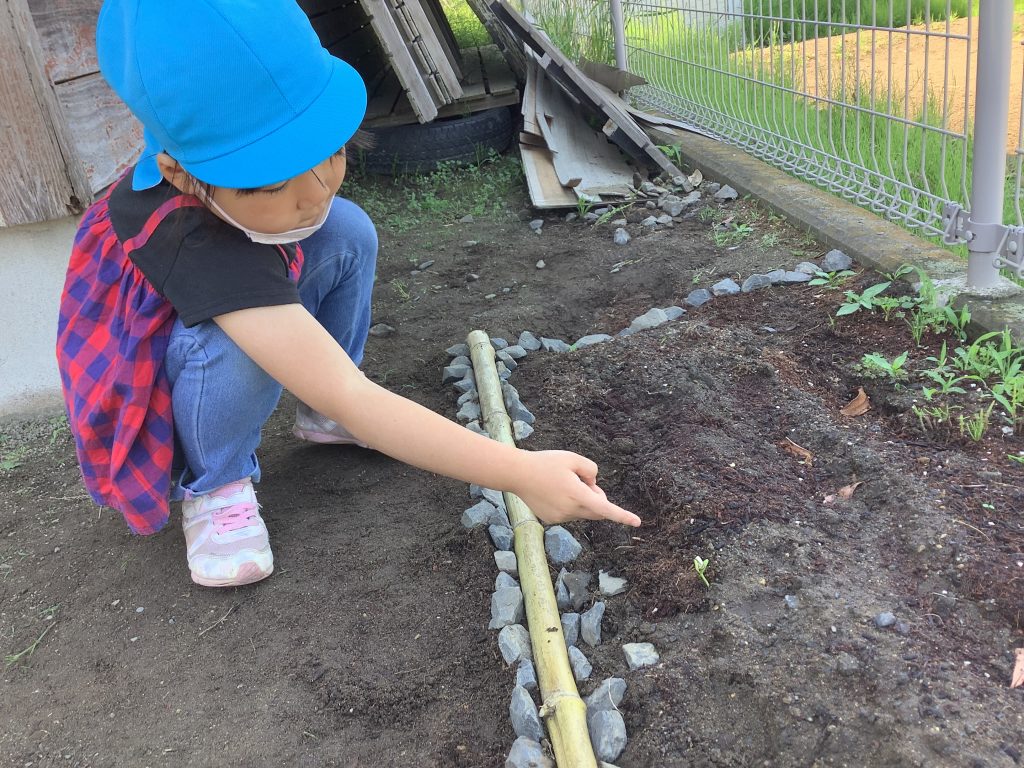 芽が出たよ🌱(4歳児) 2022 6/01 ニュース 先日植えたひまわりの種の芽が出たことを見つけたそら組さん。「このままじゃ踏まれちゃうね・・・」「どうする?」「なにか置く?」みんなで見つけた竹の棒と石を並べて・・・完成!!!1番乗りで芽を出したひまわりさんを見つけてみて下さいね! ニュース URLをコピーしました! 水族館オープン!(5歳児) はじめてのクッキング(5歳児) コメント コメントする コメントをキャンセルコメント ※ 名前 ※ メール ※ サイト 次回のコメントで使用するためブラウザーに自分の名前、メールアドレス、サイトを保存する。 上に表示された文字を入力してください。 Δ