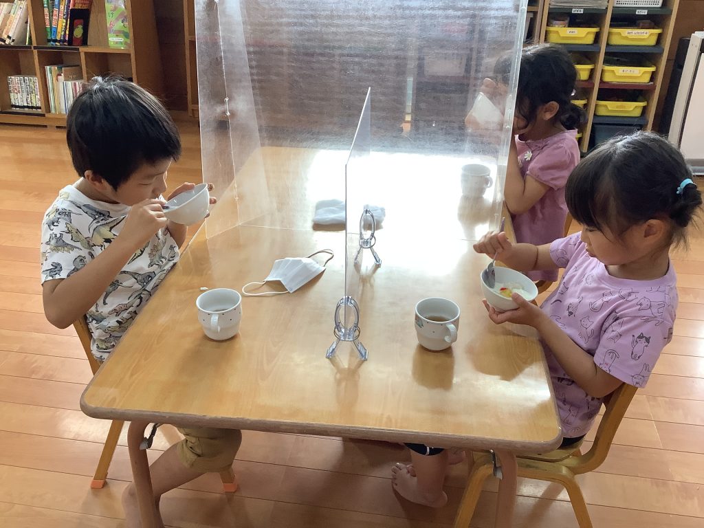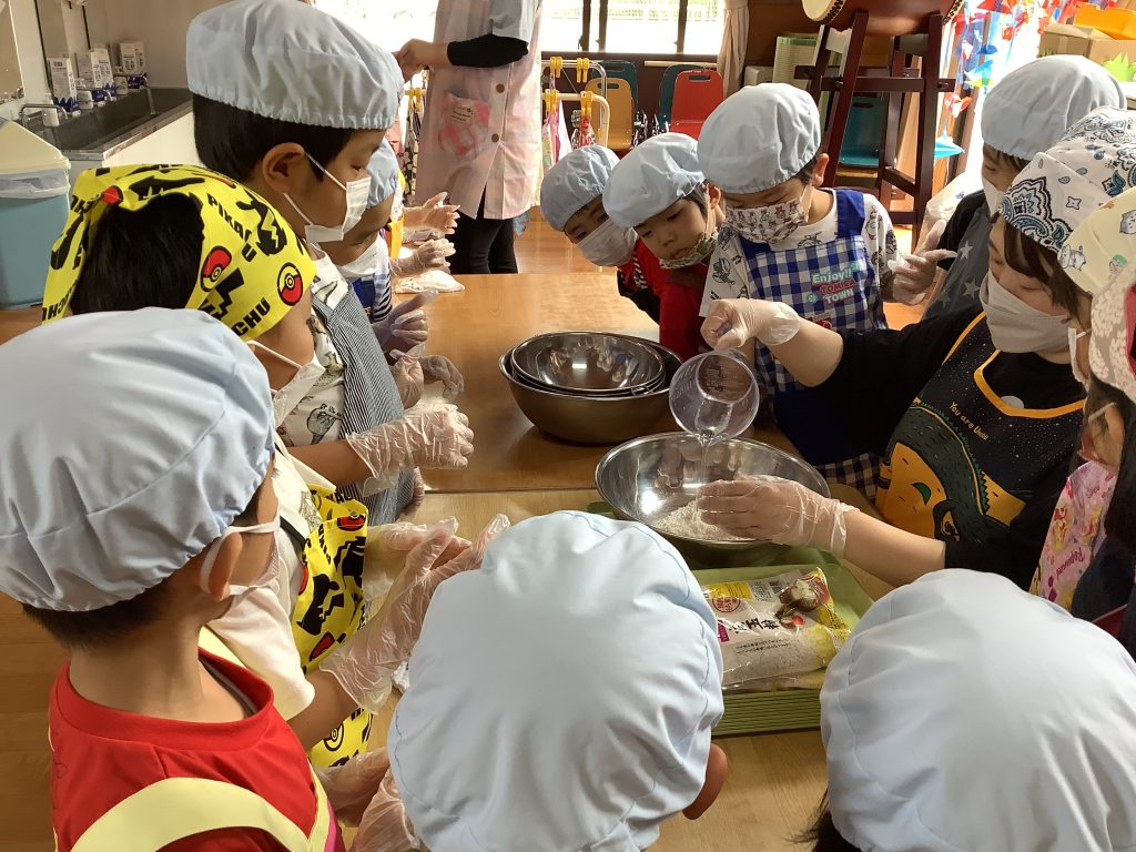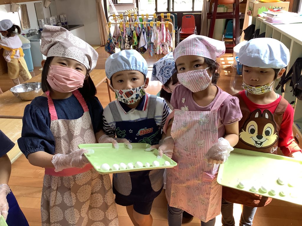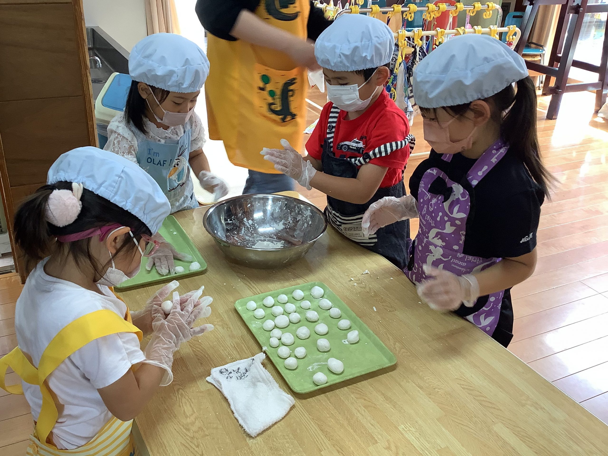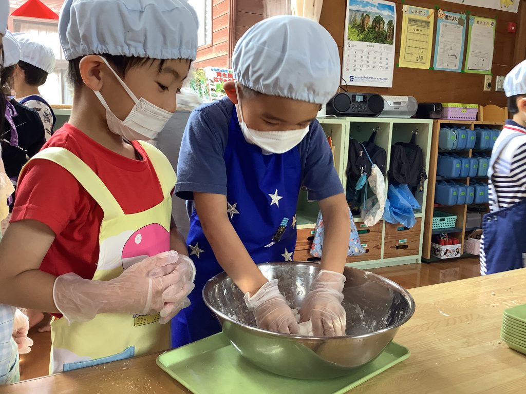 はじめてのクッキング(5歳児) 2022 6/01 ニュース 白玉作りをしました。はじめてのクッキングだったため、興味津々で作る過程を見るにじ組さん。白玉粉をこねたり、丸めたり…「おいしそうな匂いがする〜」「早く食べたい!」と言いながらも、ひとつひとつ丁寧に作る姿が見られました。 「粉がお団子になるの??」「魔法みたいだね」 「あっ!お団子みたいになってきたよ」「ほんとだ!!」 「どのくらいの大きさかな?」「おいしそうだね〜」 「白玉団子かんせーい!!」 給食の先生にフルーツ白玉にしてもらいました。 はじめて作った白玉団子!おいしかったのか、黙々と夢中になって食べる子どもたちでした。 ニュース URLをコピーしました! 芽が出たよ🌱(4歳児) 何の野菜ができるかな?(5歳児) コメント コメントする コメントをキャンセルコメント ※ 名前 ※ メール ※ サイト 次回のコメントで使用するためブラウザーに自分の名前、メールアドレス、サイトを保存する。 上に表示された文字を入力してください。 Δ