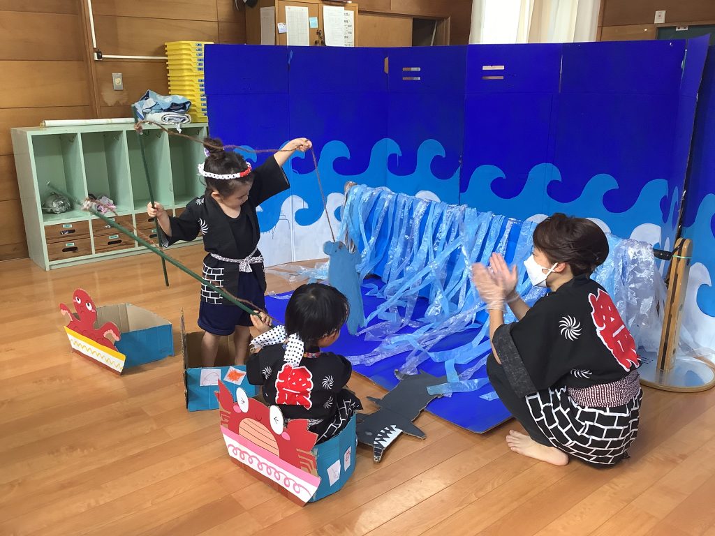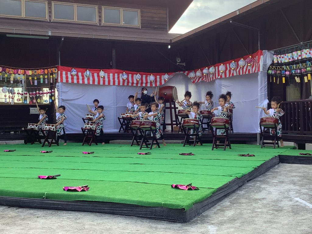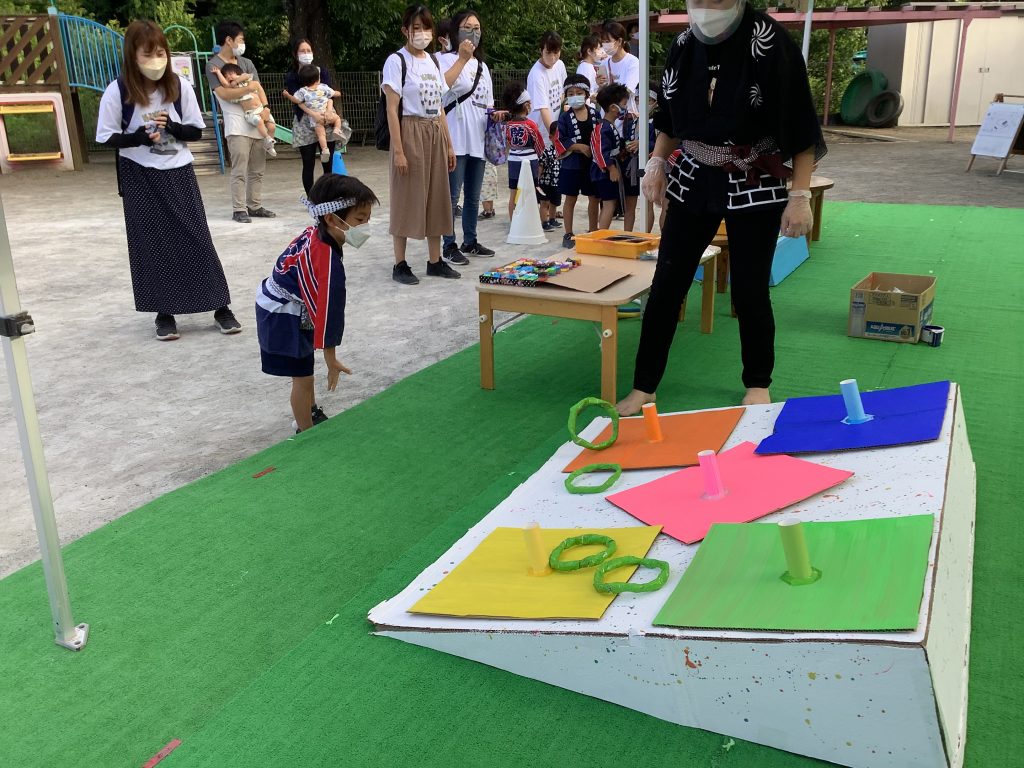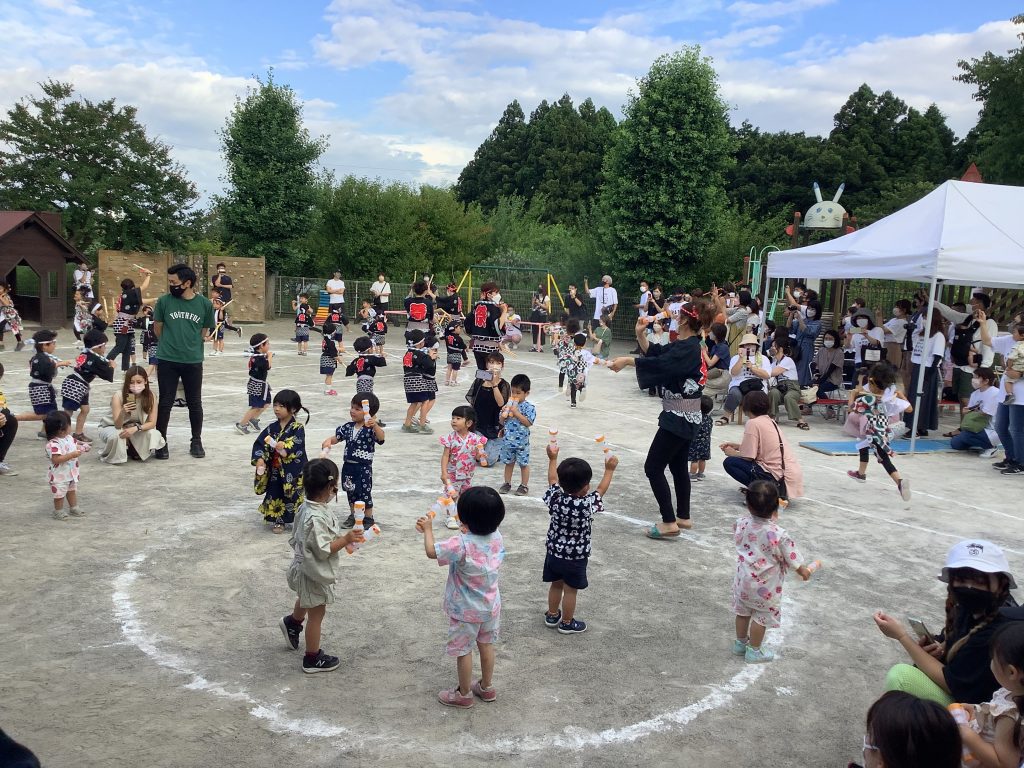 天気予報とにらめっこしながら当日までの日々を過ごしましたが、天気にも恵まれ開催することが出来ました。各クラスの提灯(ちょうちん)を背景にしたステージで、年長児の見事な発表がオ-プニングを飾りました!!保育園や守る会のゲ-ムを楽しむ子どもたちの顔がとても印象的でした。そして最後におやじの会で協力をいただいた年長児のお父さんたちのパフォーマンス込みの花火の演出とても素敵でした。