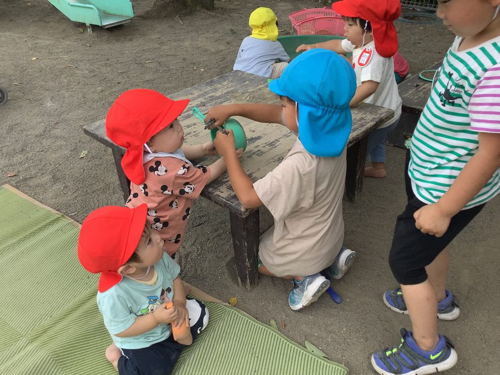 ゆめぐみにお友だちが増え、毎日元気な声が響いています。今日は涼しかったので、園庭に遊びに行ってみました。