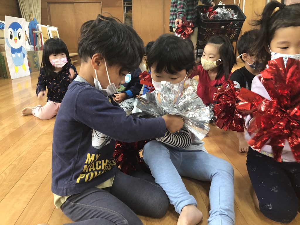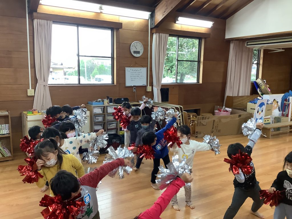 運動会では、保護者の皆さんの暖かい応援とご理解、ご協力をいただき、子どもたち一人一人がパワーを発揮することができました。練習の時からず〜っと「かっこいい〜」と音楽が流れるたびに踊りのまねをして踊っていたつき組の子どもたち!憧れの4、5歳児のダンスを教えてもらいました。