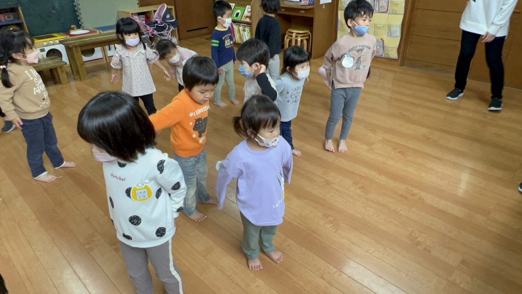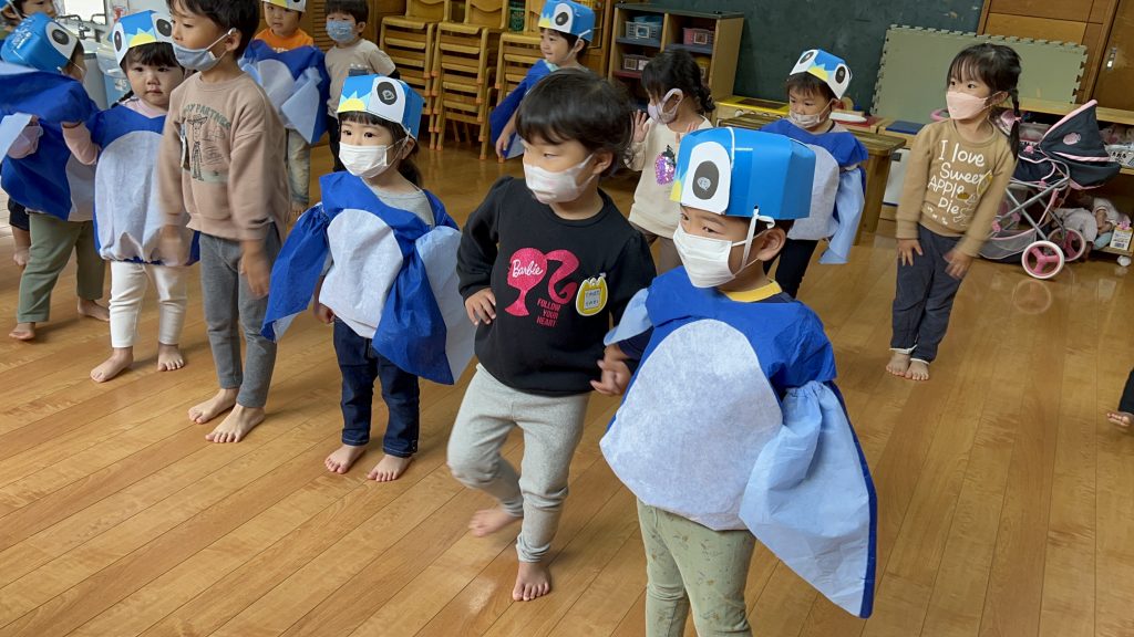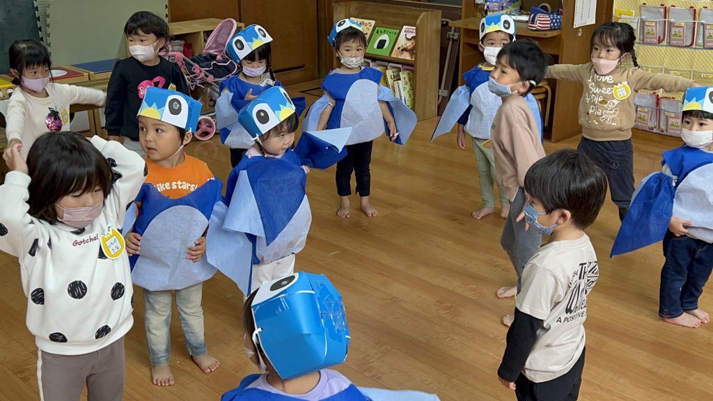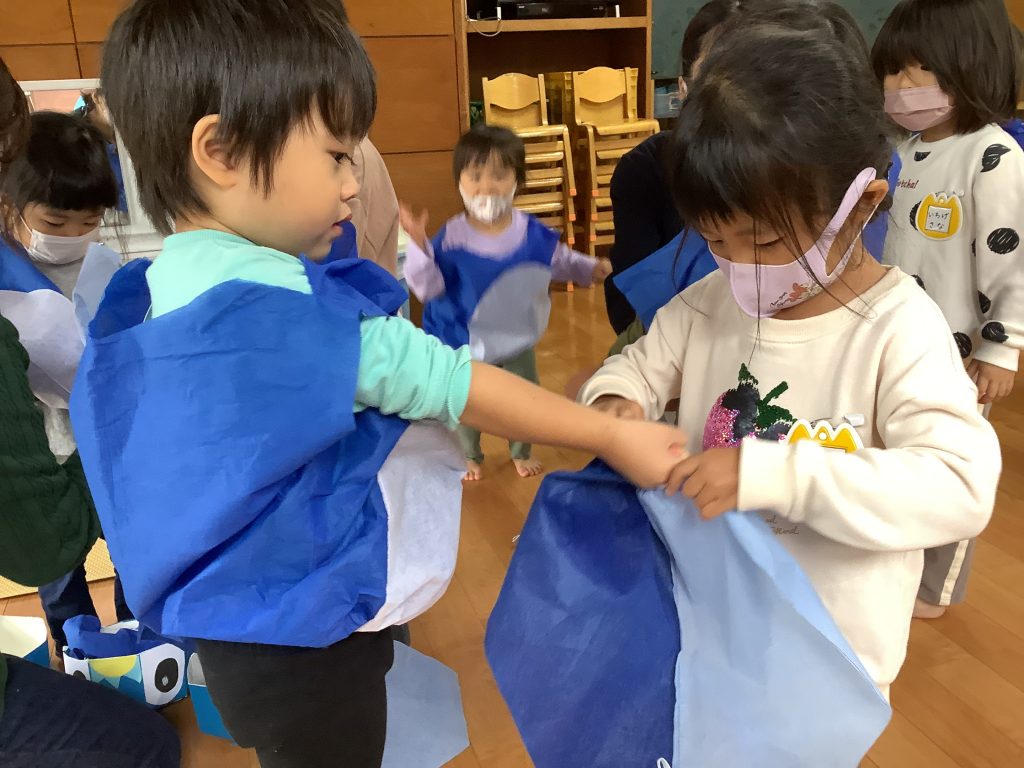 つきさんと一緒に踊ったよ!(2、3歳児) 2022 10/13 ニュース 運動会でつきさんが踊った「ぽっちゃまダンス」!!今日は、「一緒に踊ろう!」とオレンジさんを誘いに行きました。自分達の衣装を着せたり、帽子をかぶせたりとお手伝いを・・・・。ぽっちゃまに変身できたオレンジさんたちは、うれしくてウキウキです! 優しく着せることが出来、ぽっちゃまに変身! 身をお任せしてくれるオレンジさん! ぽっちゃまの服を脱いでもう一回ダンスタイム! ニュース URLをコピーしました! 運動会再現遊び(3、4歳児) 遠足(5歳児) コメント コメントする コメントをキャンセルコメント ※ 名前 ※ メール ※ サイト 次回のコメントで使用するためブラウザーに自分の名前、メールアドレス、サイトを保存する。 上に表示された文字を入力してください。 Δ