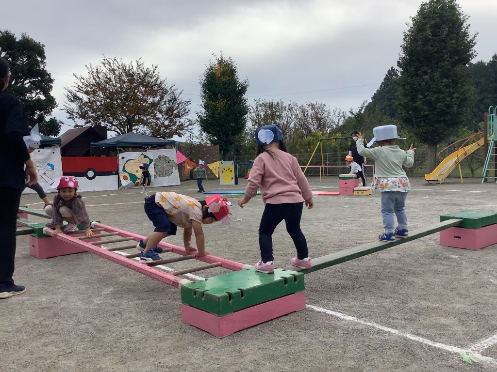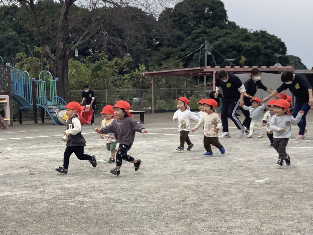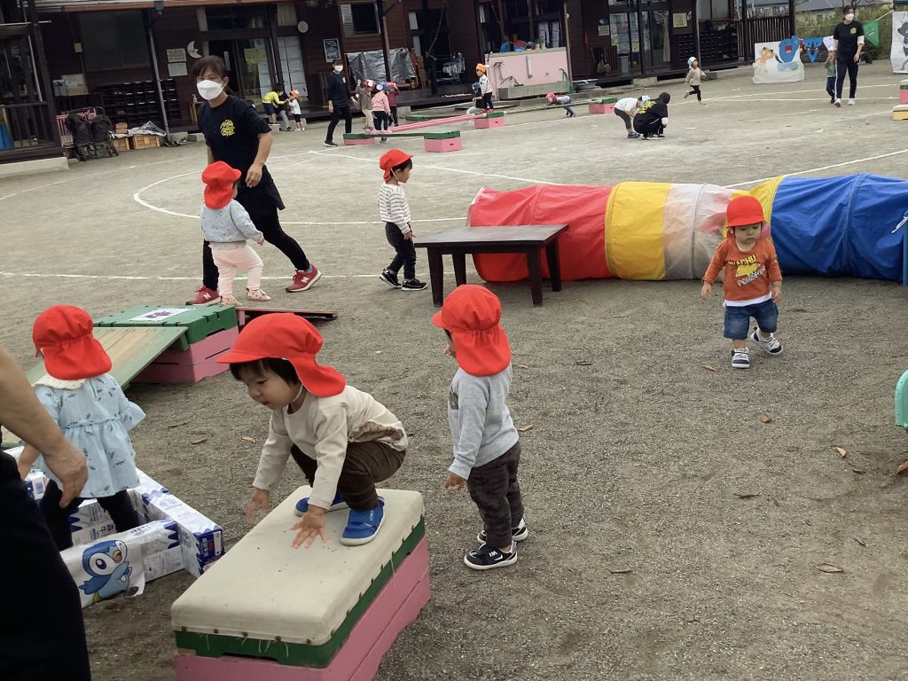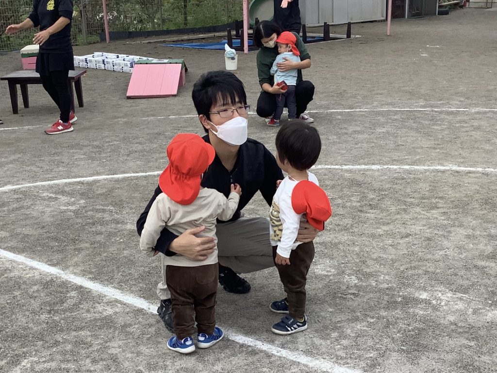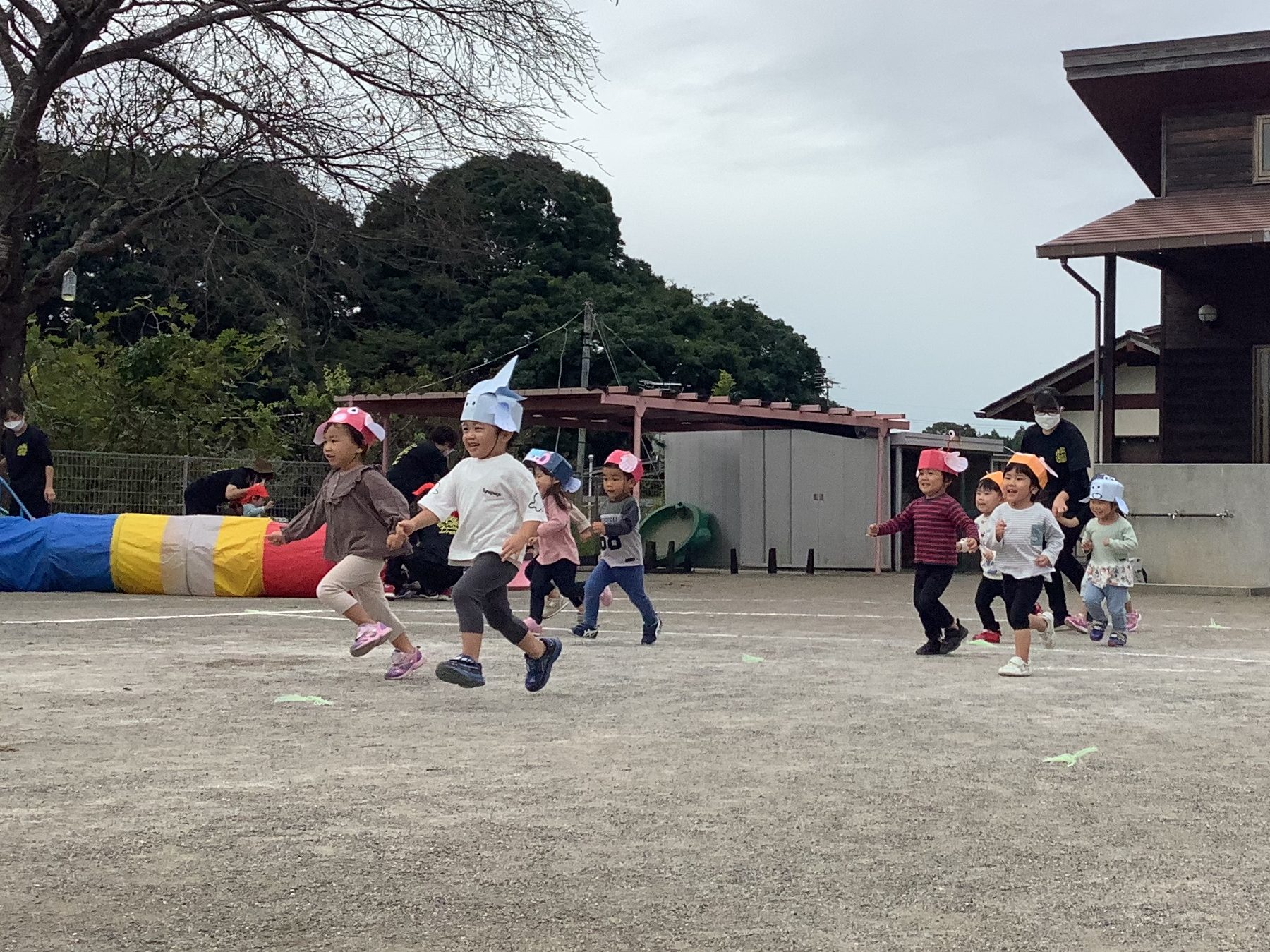 今日は小さいクラスの運動会ごっこ。お父さん、お母さんには影からこっそりのぞいていただきました。ダンスを踊ったり、友だちと一緒にかけっこしたりと普段通りのびのびと体を動かし楽しむ様子がありました。最後はお父さん・お母さんに登場してもらい一緒にふれあい遊びを楽しみました。ご参加いただきありがとうございました。