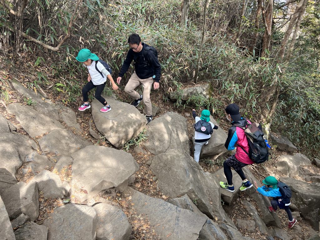 久しぶりの親子遠足つくば登山!天気にも恵まれ全員で参加することができました。「がんばるぞ!」「頂上まであきらめないで登るぞっ!」親子で目標をたて登山開始!!大きな石がたくさんある道をどうやったらすすめるか考えながらお父さん、お母さんと力を合わせて登っていくにじ組さん。頂上まで登りきると達成感から笑顔でお互いに健闘をたたえ合う姿がみられました。