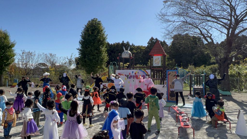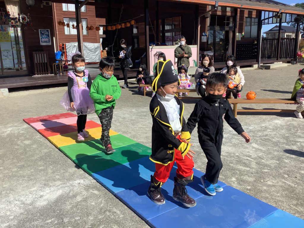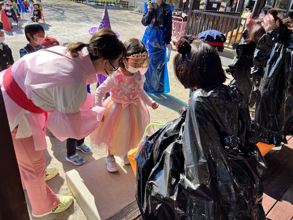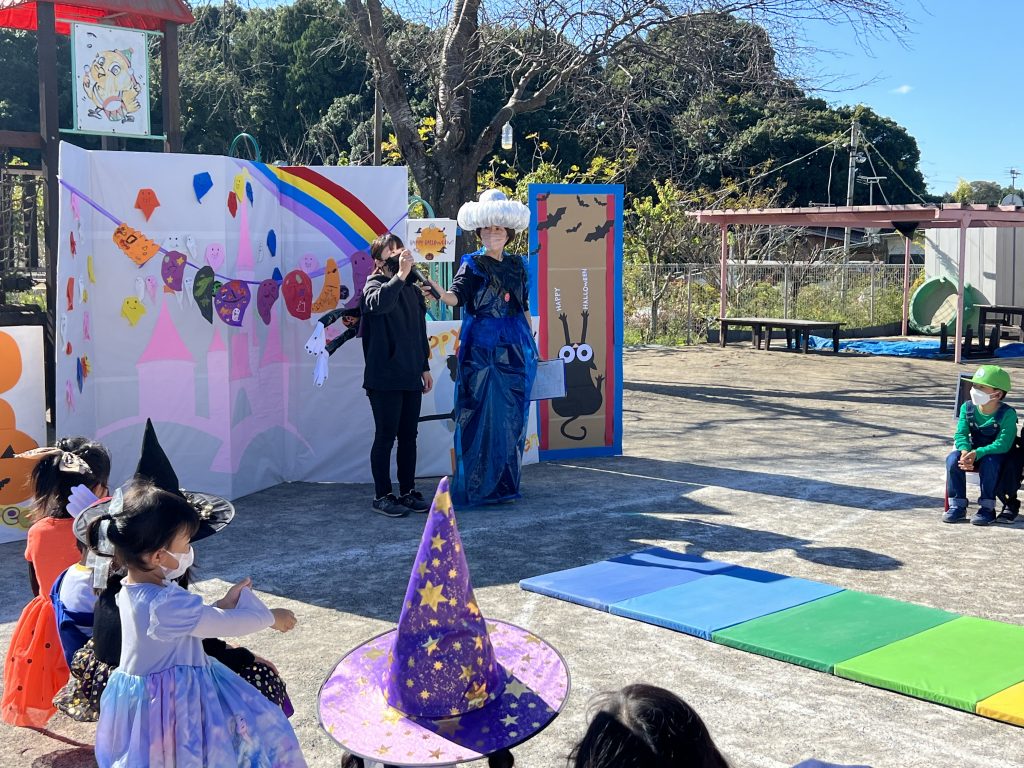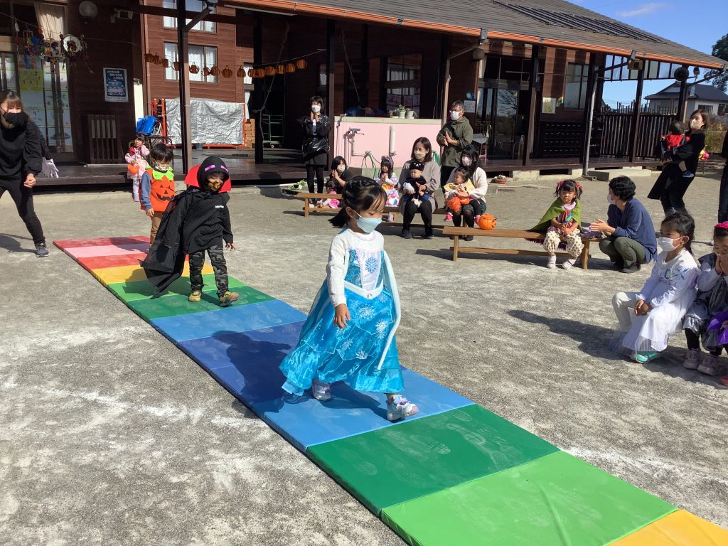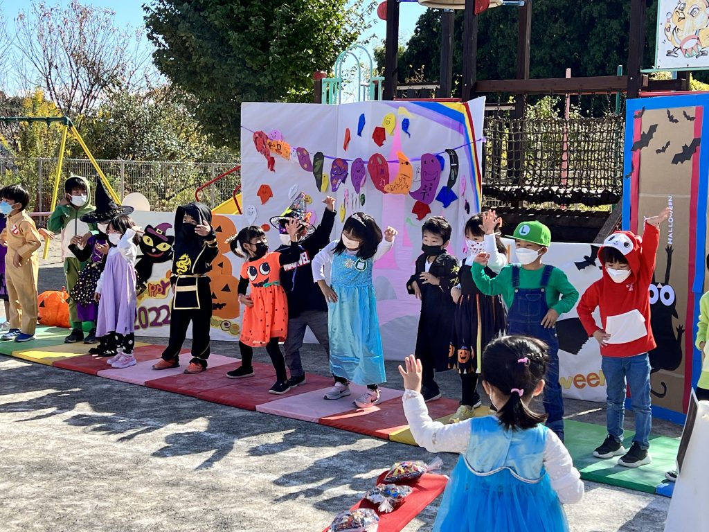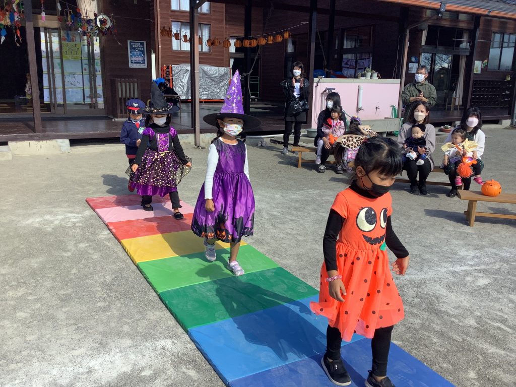 10月31日ハロウィンパーティーがありました!子どもたちも様々な仮装をしパーティーがスタート。ハロウィンの由来の紙芝居をみたあと、おまちかねのファッションショー!ランウェイを堂々と歩く姿がありました!「トリックオアトリート」と魔法の呪文もみんなで覚えお菓子をもらい、最後はお化けダンスをして楽しいパーティーが終わりました。