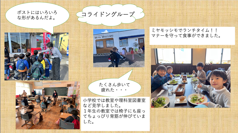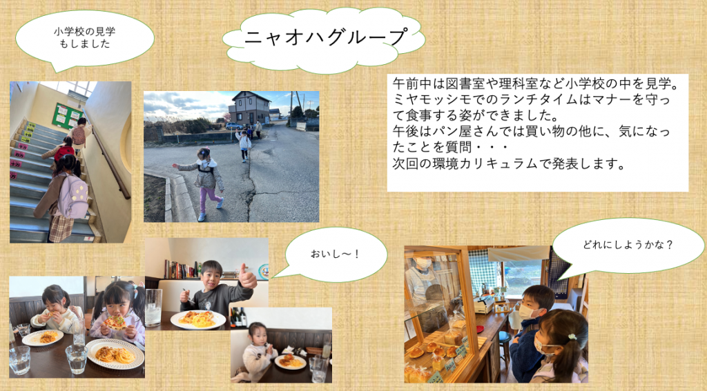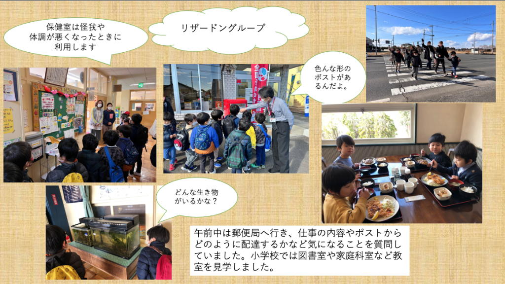 年長児環境カリキュラム 2023 2/22 ニュース 年長さんが、額田の地域を交通ルールを守りながら歩いて探検し、グループで行ってみたいところや見学したい施設を決め計画を立てました。レストランではマナーを守りながら食事をしたり、公共の施設では気になったことを質問したり見学する事ができました。 ニュース URLをコピーしました! 落語会(4.5歳) 親子広場 「ぬかっぽ」 コメント コメントする コメントをキャンセルコメント ※ 名前 ※ メール ※ サイト 次回のコメントで使用するためブラウザーに自分の名前、メールアドレス、サイトを保存する。 上に表示された文字を入力してください。 Δ
