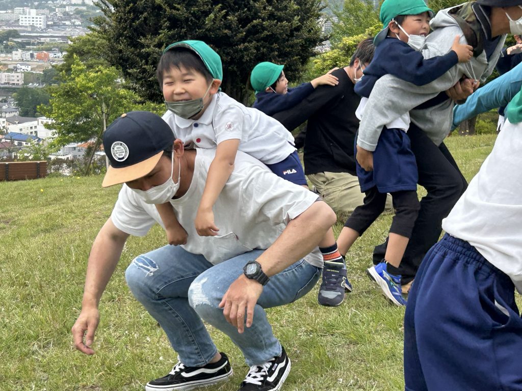 子どもたちが、待ちに待った親子遠足!今年は、日立市かみね公園・かみね動物園に行ってきました。大型バスに乗り出発進行!かみね公園に着いてからは親子でふれあい遊びをしたり、動物変身ゲームやリレーをして楽しい時間を過ごしました。おうちの人とお弁当を食べた後は動物園へ!本物の動物を見て「ゾウさん大きい〜!」「キリンの首ってこんなに長いんだね」と大興奮。