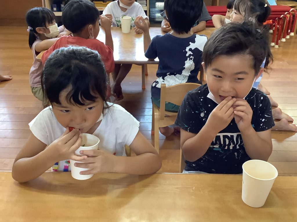 「トマト、すっごくあまいね〜」