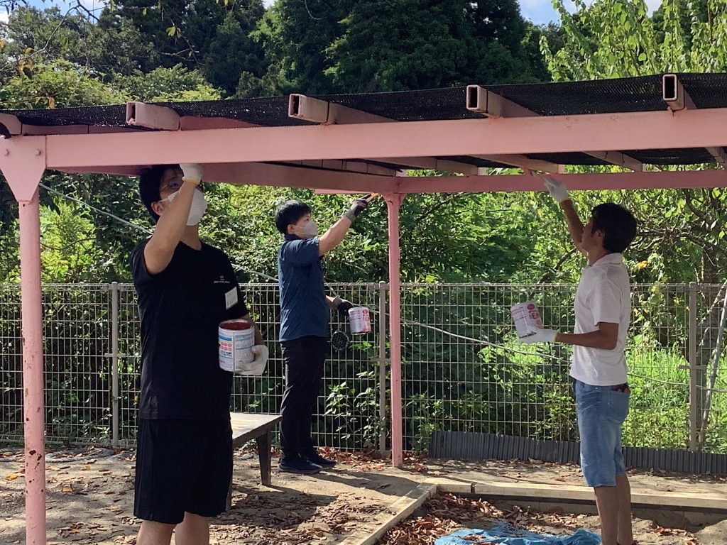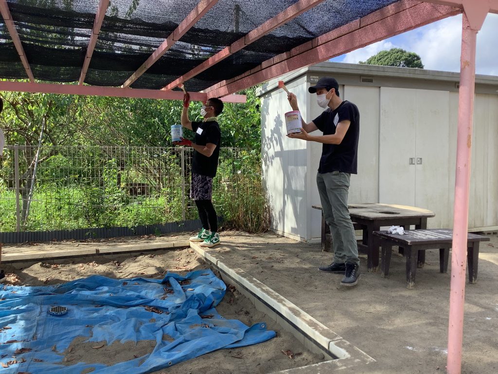 砂場の屋根と柱のペンキ塗りを「和やかに」「穏やかに」「楽しく」進めてくださいました。