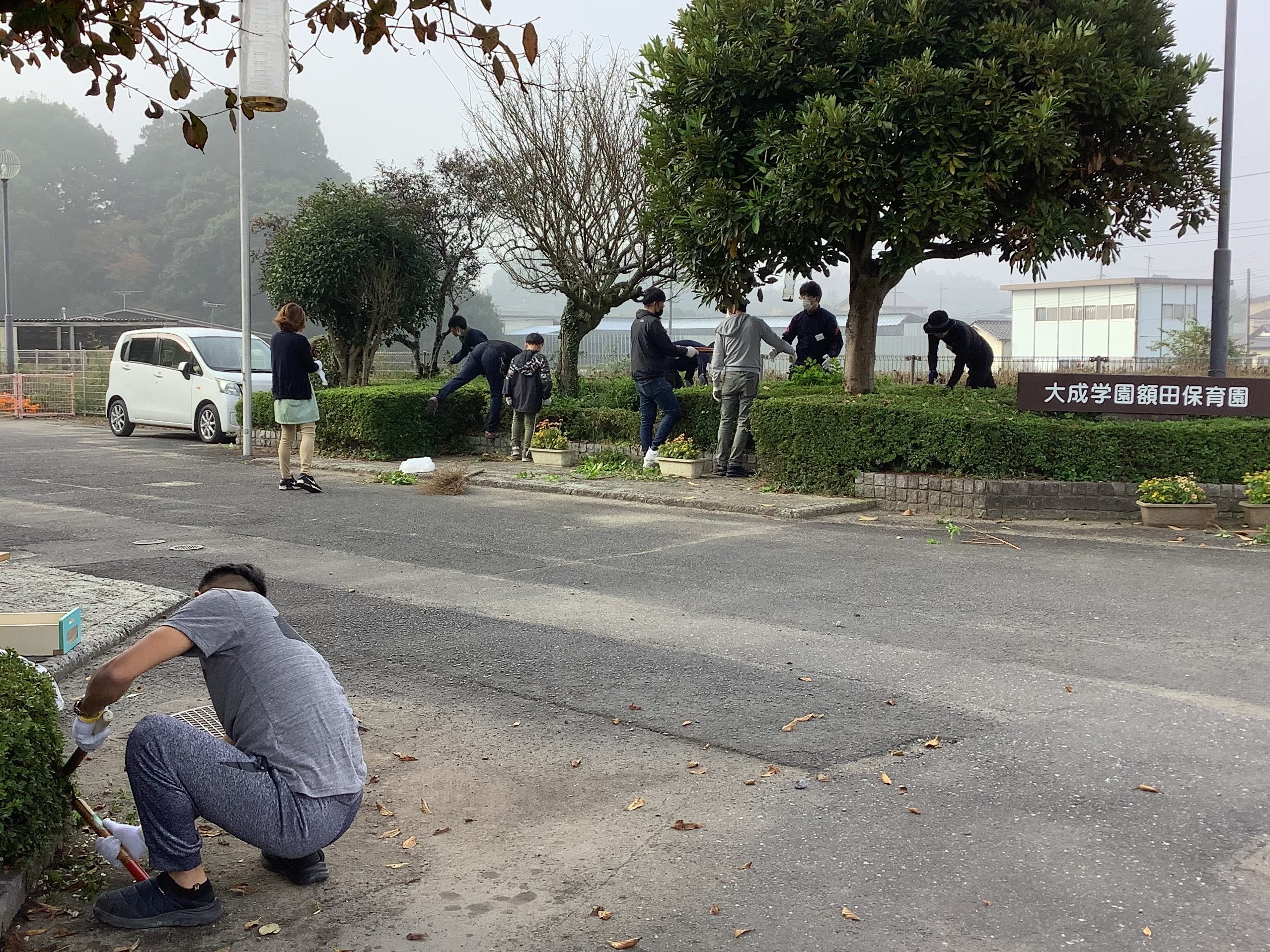 今年度最終回となる第4回目のおやじの会が11月4日に行われました。今回は15名と多くのおやじの力が集結し、駐車場の採石入れや、植え込み、植木の刈り込みなどをしていただきました。会長を筆頭に役割を分担したり協力しながら短い時間で駐車場も園庭もとてもきれいになりました!