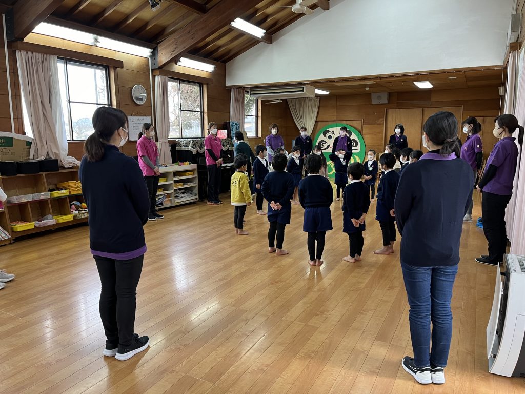 今年度最後のリトミックを行いました。年長さんはちょっと緊張した表情で真剣に取り組んでいました。
