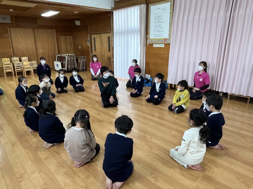 難しい動きも生井沢先生の発令をよく聞いて上手に出来ました。「チャンピオン!」沢山褒めてもらいました。そして、小学校に向けて、大切なお話を聞きました。リトミックの経験が小学校での生活につながっていきます。