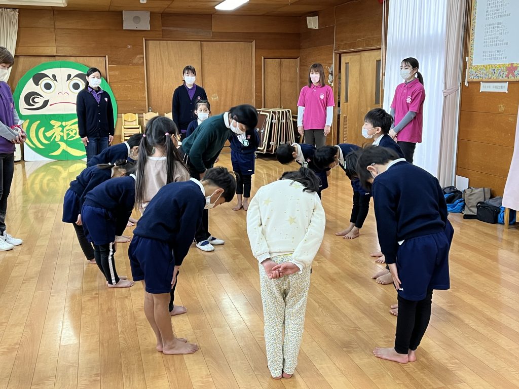 リズム遊戯「こんぺいとう」を踊った後に、先生から金平糖のプレゼントをいただきました。「お口に入れたら、最後までかまずになめてくださいね。」最後はしっかりとご挨拶も出来ました。