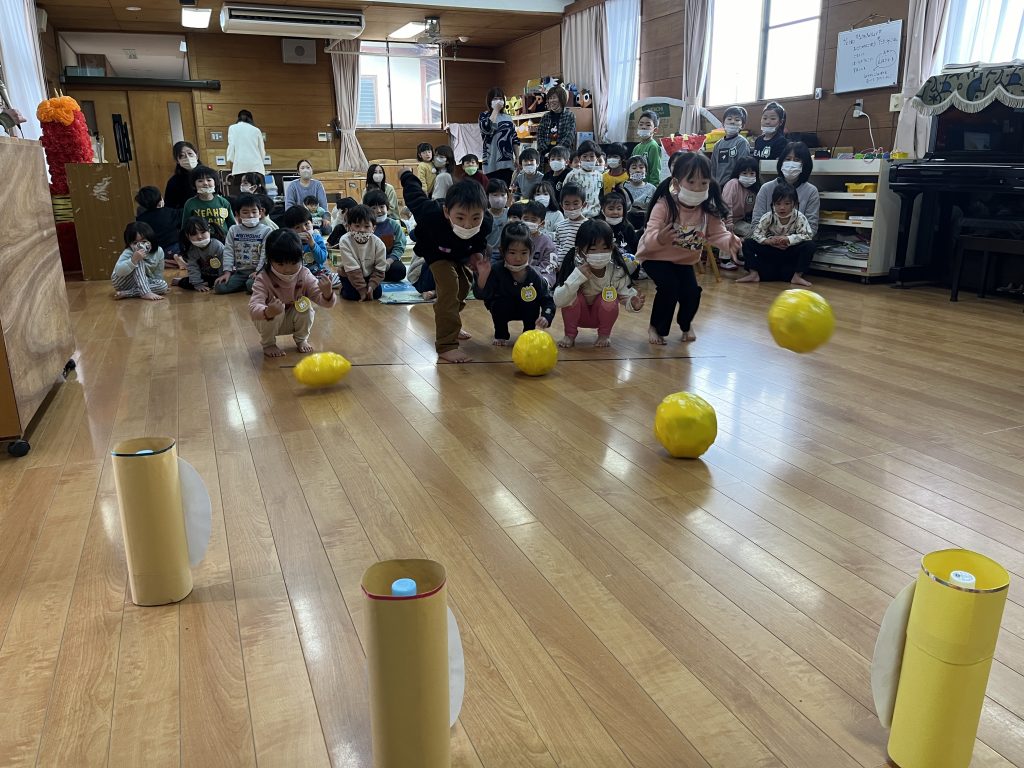 ぬかっぽさんもクイズやゲームに参戦!!たくさん鬼のピンを倒すことができました。