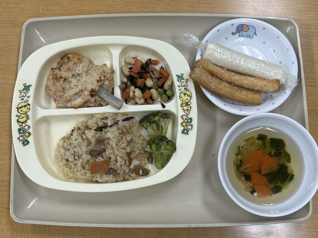 今日の給食のメニューは「鬼のかなごぼう」です。「本物のかなぼうみたい!」とうれしそうに食べる姿が見られました。