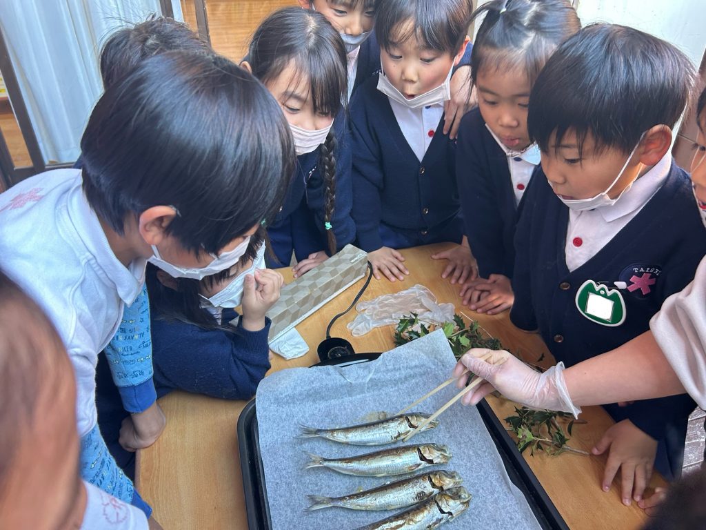 2月1日に年長さんがやいかがしを作りました。「くさいー!」と鼻をつまみながら「これなら鬼も来れないね」と、節分の準備も万端!