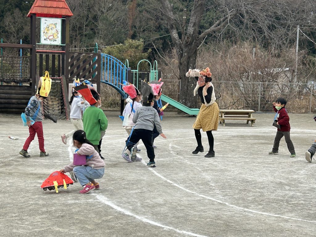 泣きながら帰る鬼を見て「お友だちになろう!」と声をかけた年長さん。最後は手をつないだりハイタッチをしたりして仲良くなることができました!