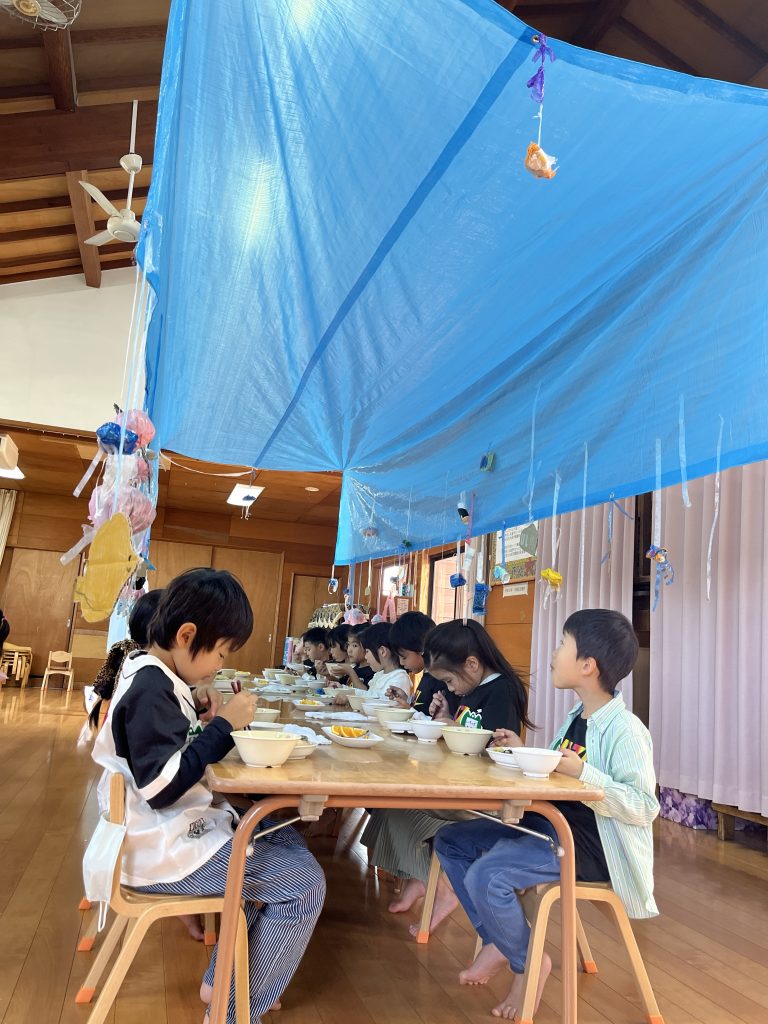 にじ組さんの給食は、お魚トンネルの中でおいしくいただきました!