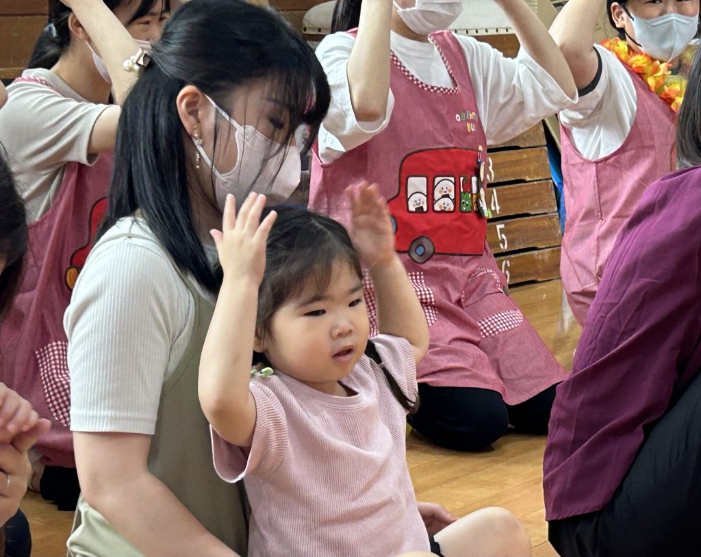5月に続き、茨城女子短期大学の馬立ゼミの学生さんが遊びにきてくれました。今回も2歳児さん一緒に参加し手遊びや歌、いろいろな楽器に触れ音の音色を感じたり、身体をたくさん動かしたり親子で楽しい時間を過ごしました。