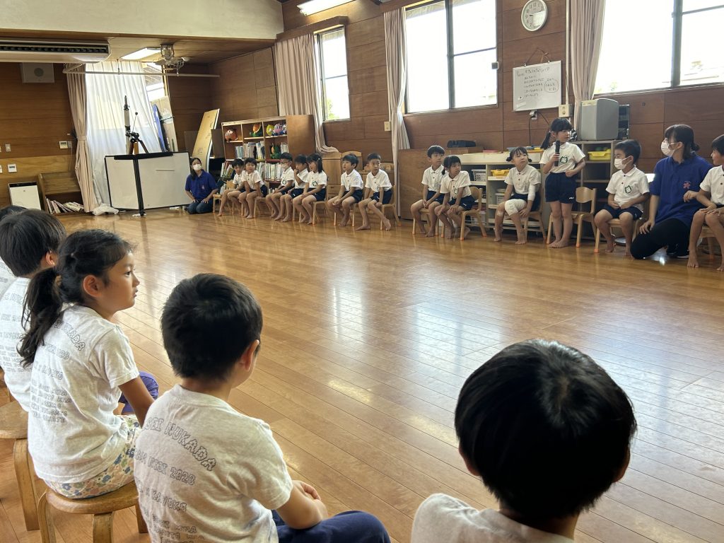 一年生も年長さんも今後への期待や自覚が高まった有意義な時間となりました。                    夏休みに入り宿題や遊びで忙しい中、たくさんのことを教えてくれて本当にありがとうございました!