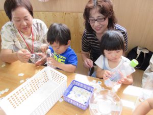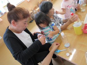 おじいちゃん、おばあちゃんたちと一緒にマラカス作りをしていきました。