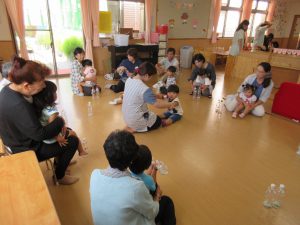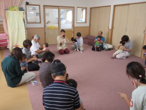 いっぱいフリフリさせて、たくさん踊った後は、触れあい遊びや絵本を読んで過ごしていきました。