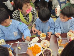 お部屋の中に入ってからは、お待ちかねのクッキングでした♪