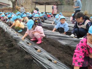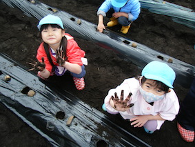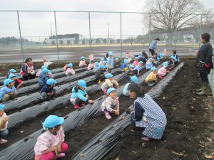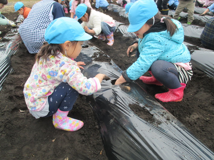 最後に海野先生から収穫するのは、みんながふじ組さん、さくら組さんになってからと聞いて増々進級が楽しみになったようです。大きくておいしいジャガイモが収穫できますように☆