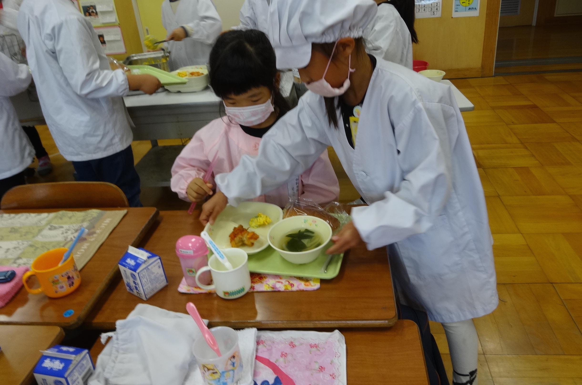 1年生のお兄さん,お姉さんがやさしく配膳してくれました。