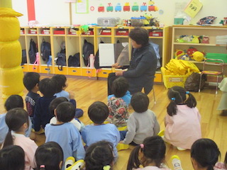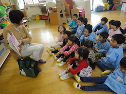 お話の会「ルピナス」4歳児 2017 10/18 ニュース 本日ルピナスの方による絵本の読み聞かせがありました。 もも組 「ちいさなバス」「わたしのワンピース」「かぶとむし」「ぐりとぐらのえんそく」 うめ組 「お月さまってどんなあじ?」「おちゃのじかんにきたとら」「おなら」 ニュース URLをコピーしました! 5歳児給食体験in五台小学校 今日の給食 10月20日(金) コメント コメントする コメントをキャンセルコメント ※ 名前 ※ メール ※ サイト 次回のコメントで使用するためブラウザーに自分の名前、メールアドレス、サイトを保存する。 上に表示された文字を入力してください。 Δ