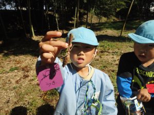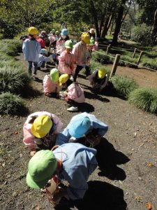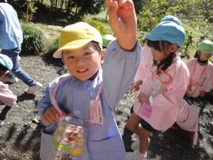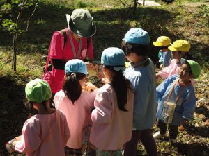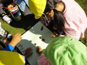 ドングリがたくさん落ちていて夢中になって拾う子ども達…
