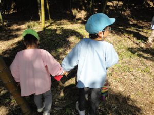 5歳児のお兄さんお姉さんが優しく手を引いてくれる姿も見られました。