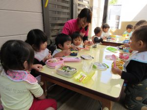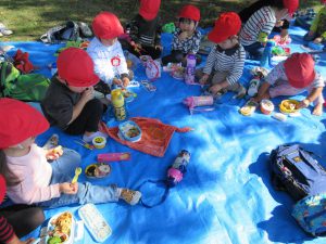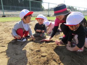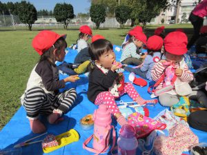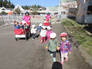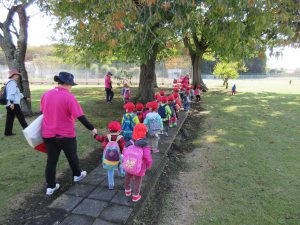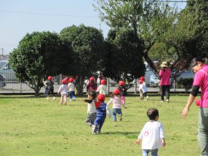 1・2歳児は短大の芝生へお散歩に出かけました!!