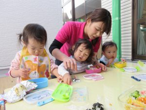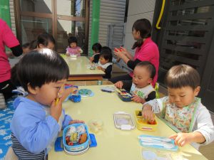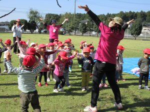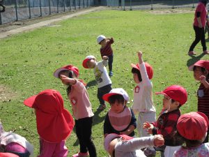 短大に着くと、「バナナくん体操」「エビカニクス」「タオルルンルン体操」をしました。