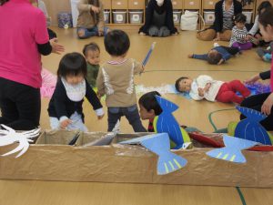 ネコちゃんの所へお魚さんたちを届けてくれました。