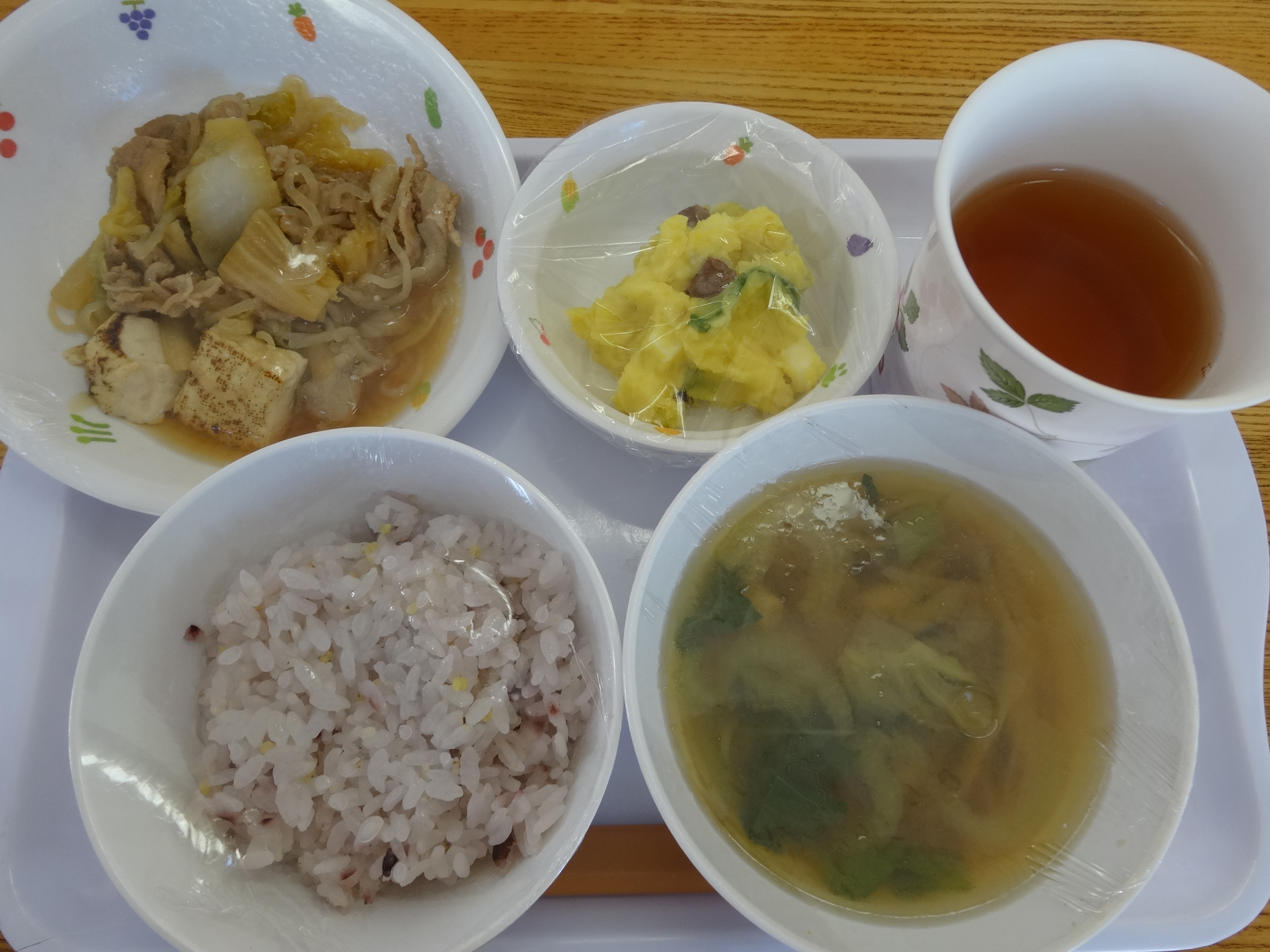 今日の給食 11月16日(木) 2017 11/16 ニュース 本日の献立 雑穀ご飯・味噌汁(チンゲン菜・ごぼう・しめじ)・豚肉のすき焼風煮・さつまいもサラダ・麦茶 ニュース URLをコピーしました! 欠席状況(感染症) 11月16日(木) ミニスポーツフェスティバル コメント コメントする コメントをキャンセルコメント ※ 名前 ※ メール ※ サイト 次回のコメントで使用するためブラウザーに自分の名前、メールアドレス、サイトを保存する。 上に表示された文字を入力してください。 Δ