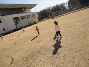 凧揚げ(4歳児) 2018 1/15 ニュース 一人一人作った凧を持ち,短大の芝生で凧揚げをしました。 とても良い風が吹き,空高くあがる凧がたくさんありました。 「見てみて〜」「たくさん揚がった」と嬉しそうな姿。「とばないよ〜」と言い何度も挑戦する姿。最後は,「楽しかったね」と話していました。 ニュース URLをコピーしました! 欠席状況(感染症) 1月15日(月) お話の会「ルピナス」 3歳児 コメント コメントする コメントをキャンセルコメント ※ 名前 ※ メール ※ サイト 次回のコメントで使用するためブラウザーに自分の名前、メールアドレス、サイトを保存する。 上に表示された文字を入力してください。 Δ
