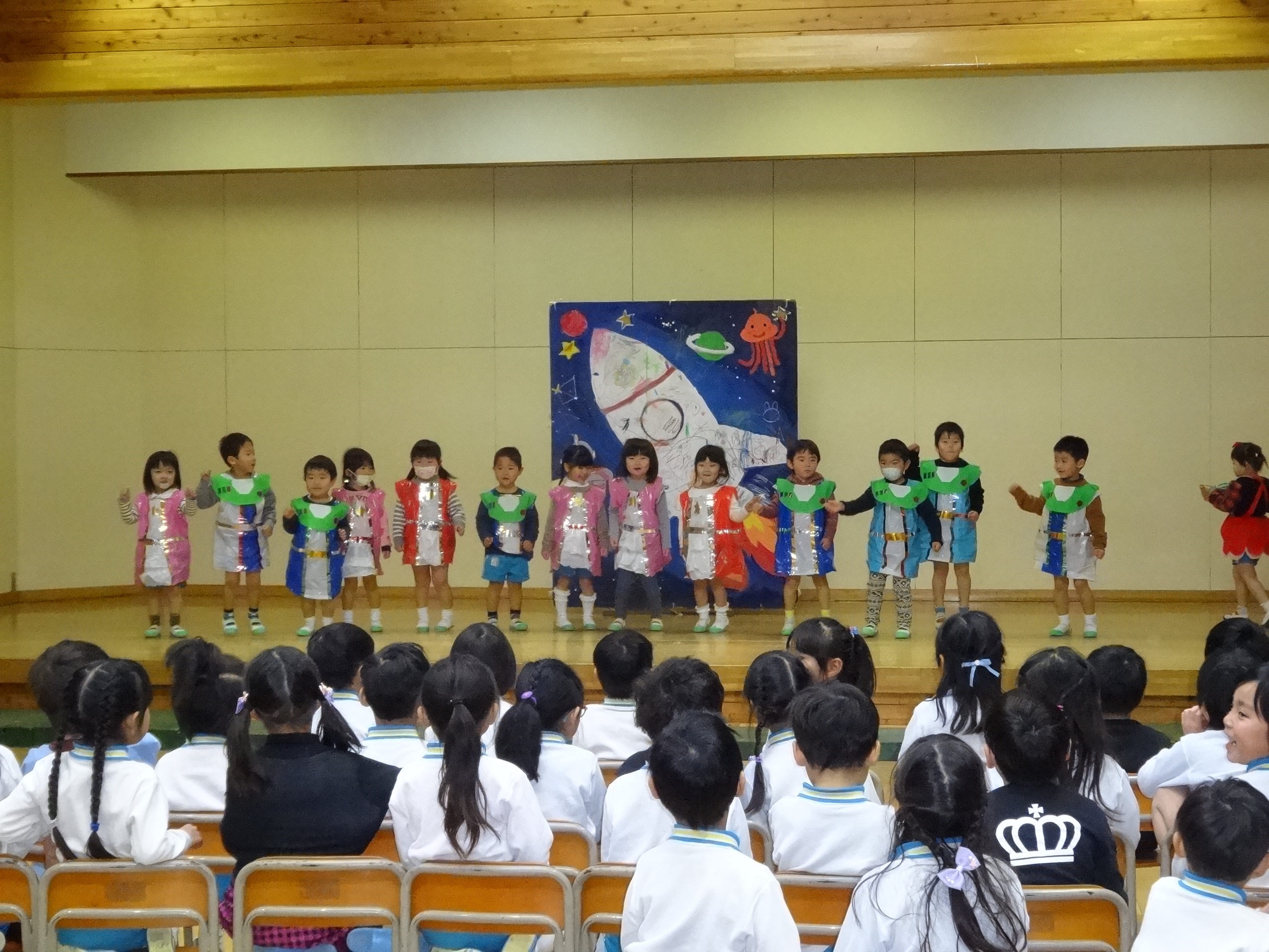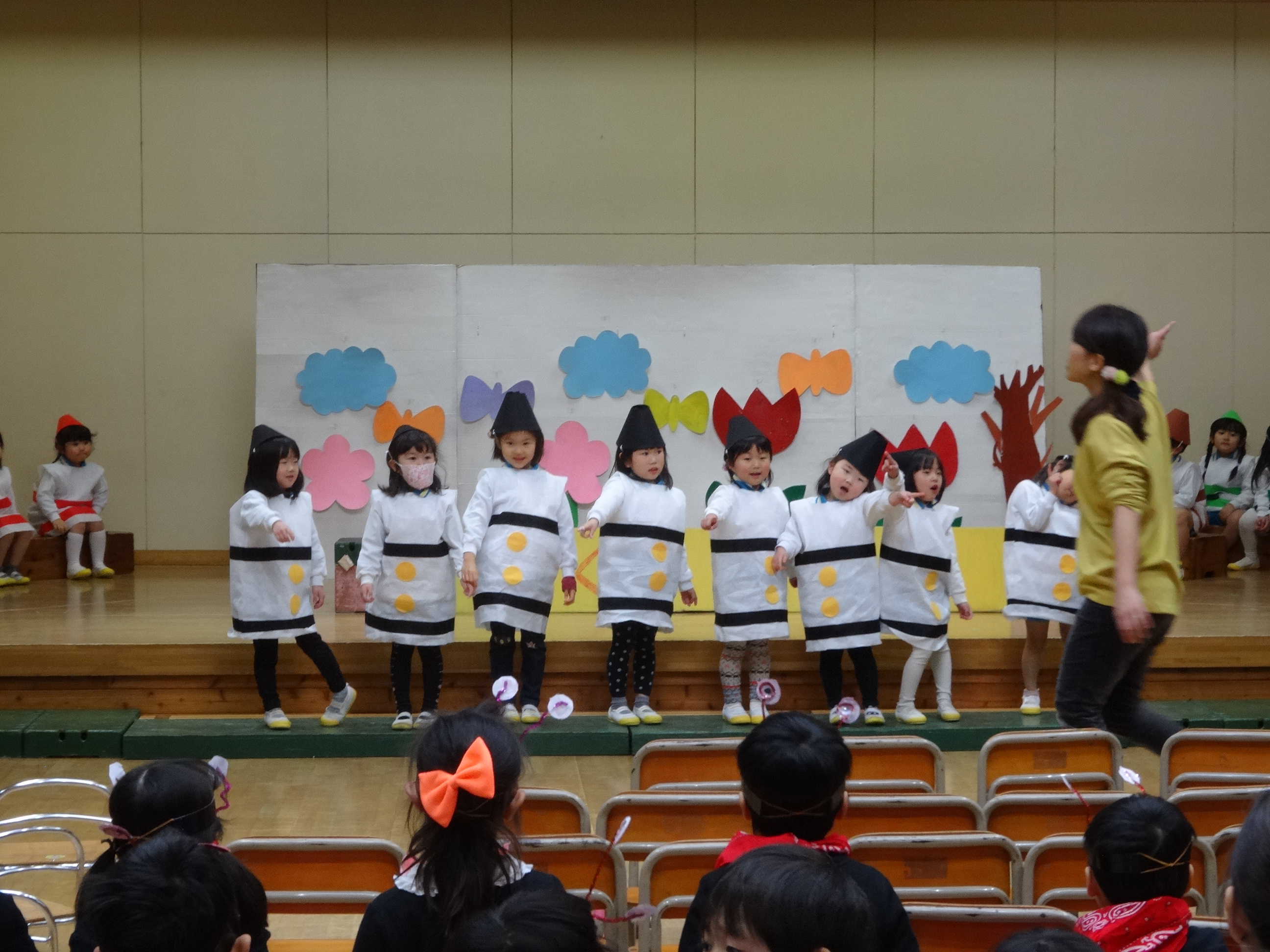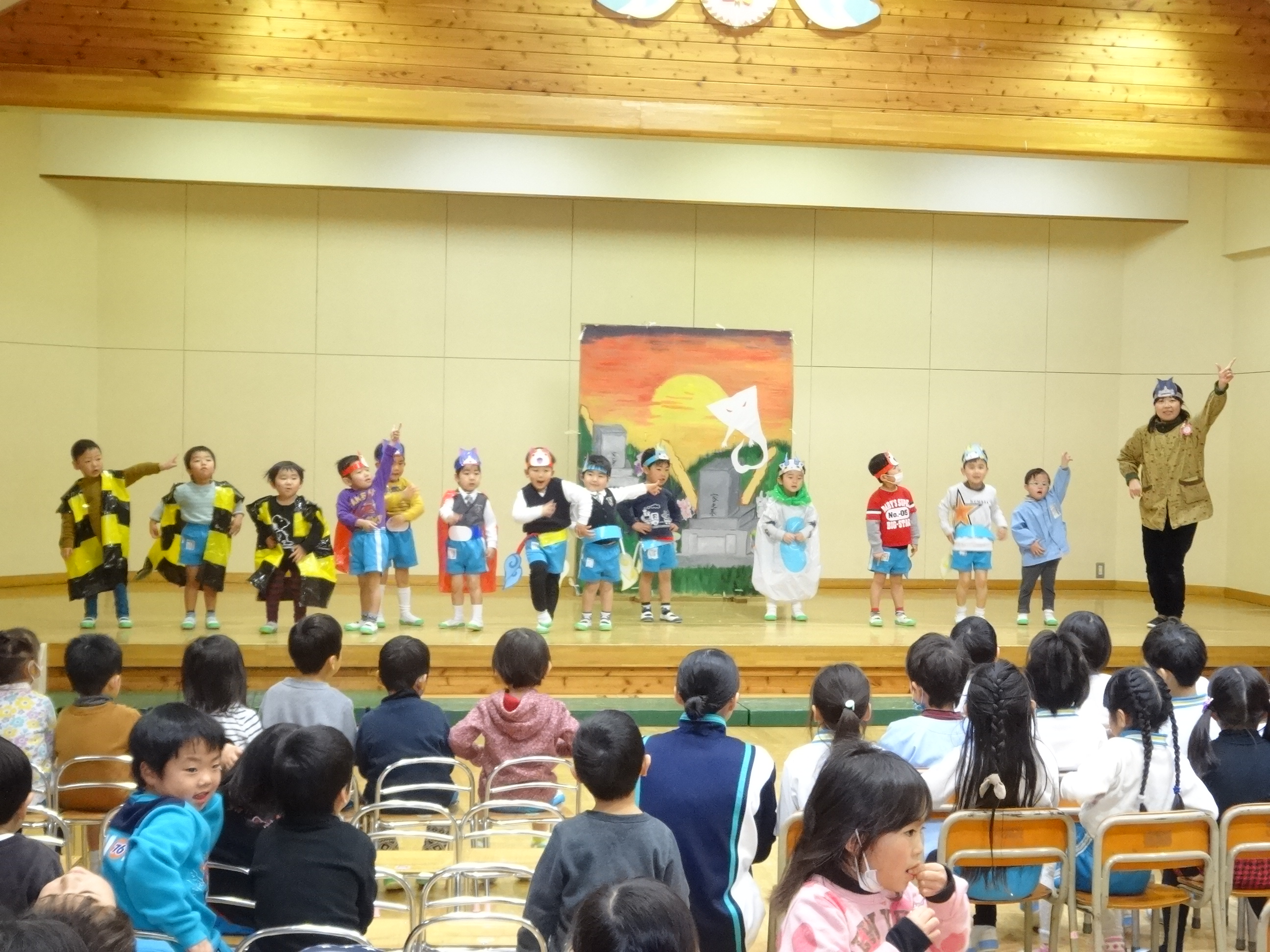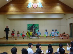 5歳児 他のクラスの友達が観ているので、演技にも熱が入ります。